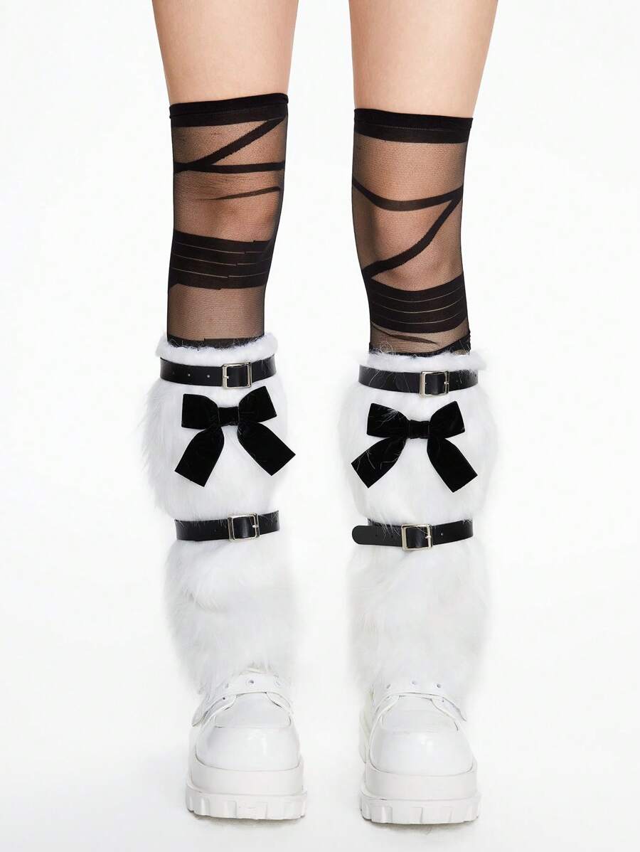 Anime 1 Set Includes: 1 Pair White Bow Furry Leg Warmers + 1 Pair Over-The-Knee Socks + 2 Pairs Leg Rings, Y2K Punk Style Accessories For Women