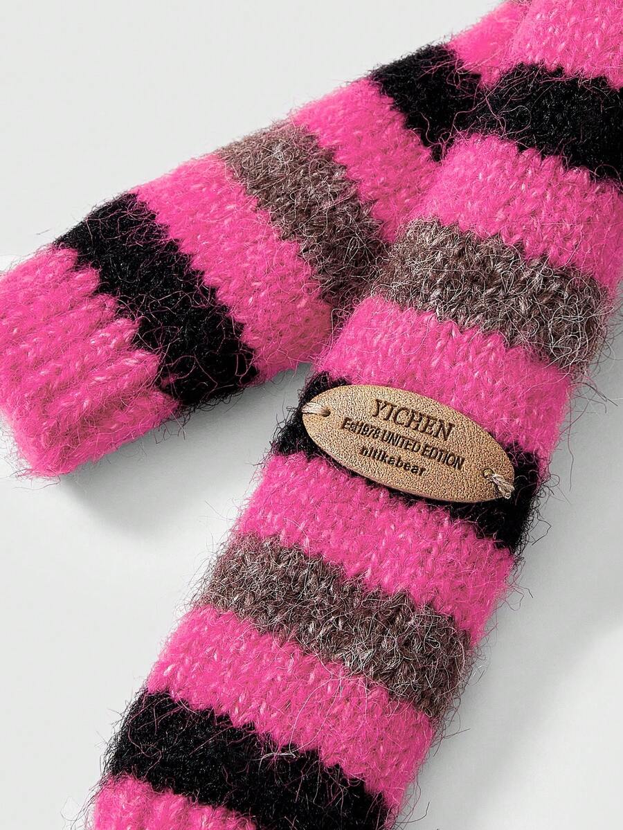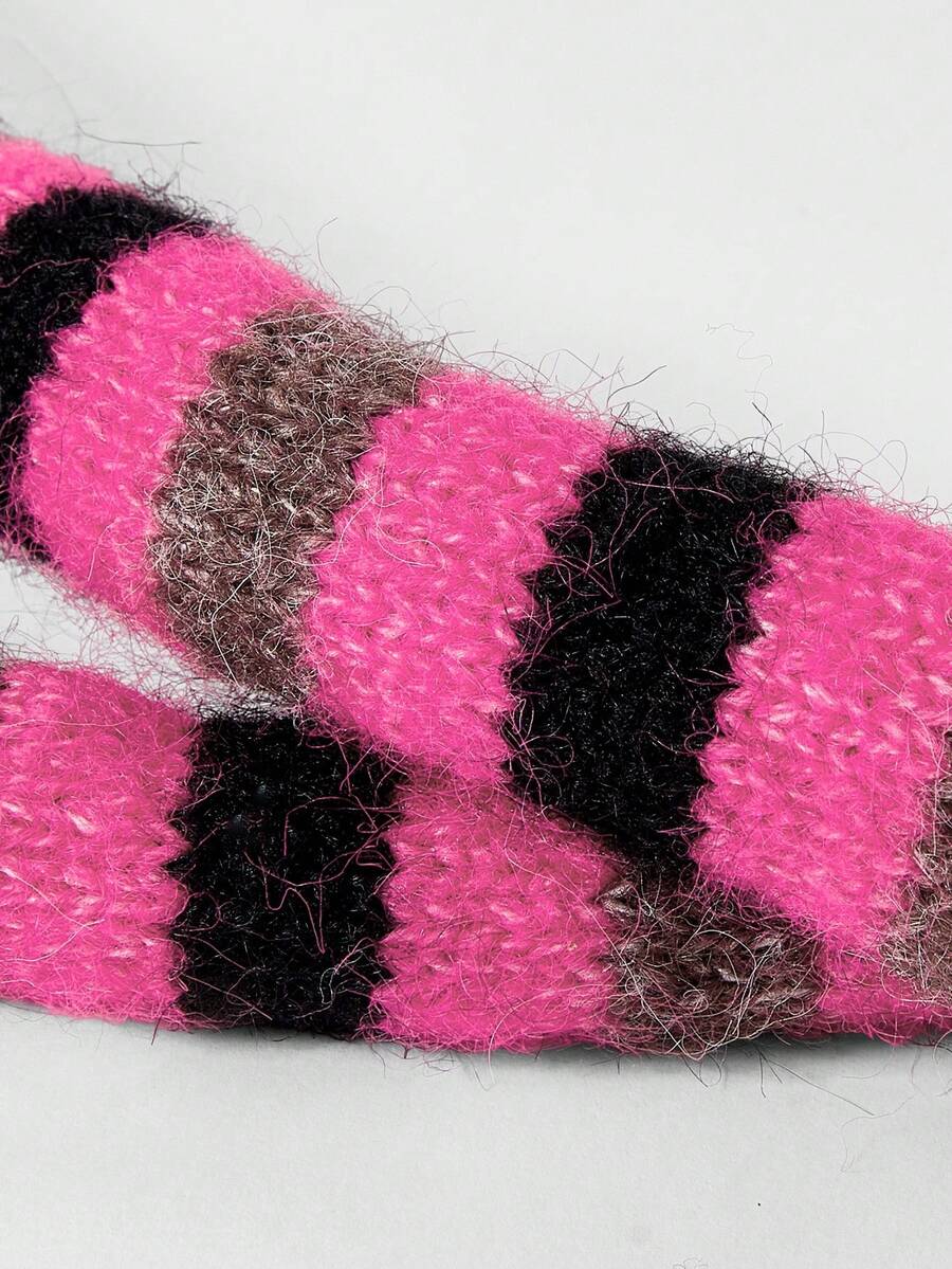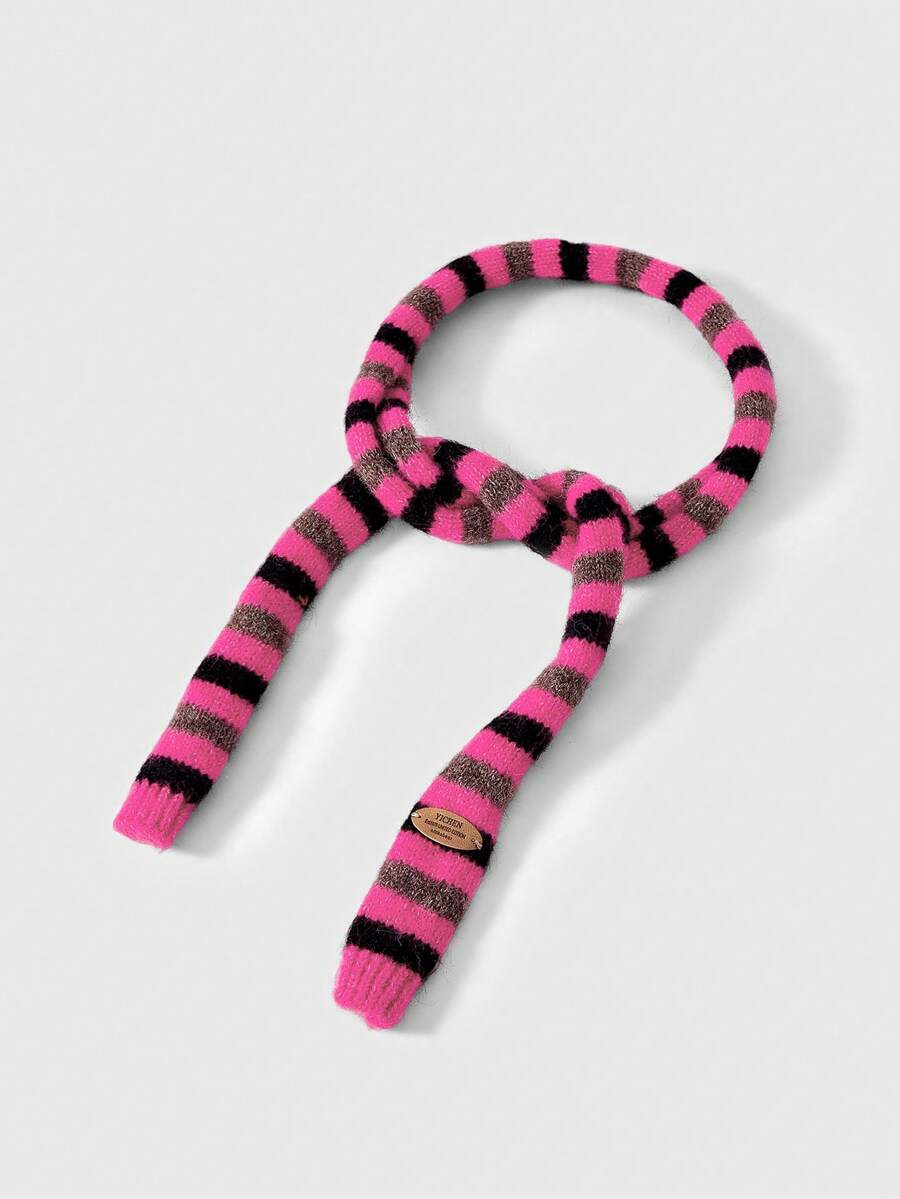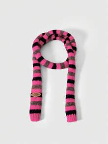 Anime 1pc Black & Pink Y2K Punk Kawaii Sweet Vintage Striped Patchwork Contrast Color Fashion Simple Women Scarf, Suitable For Street, Campus, Commute, Etc.