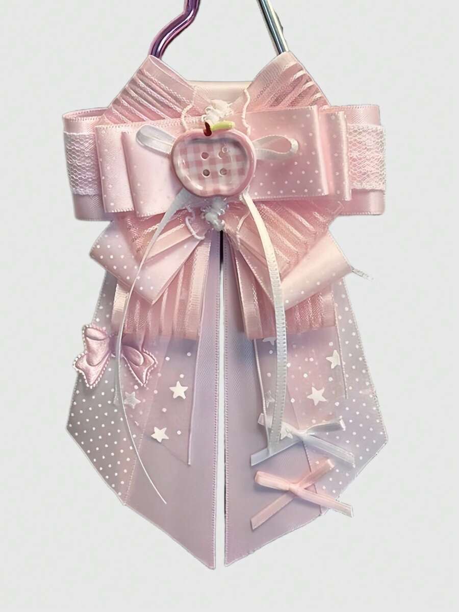 Anime 1pc Kawaii Sweet Cute Music Note Print Lace Patchwork 3D Wing Y2K Star Foil Print Bow Shaped Keychain & Keyring, Handmade Lolita Campus Card Holder Bag Charm