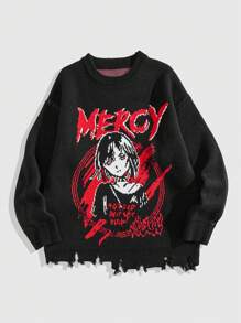 Anime 1pc Men's Casual Graphic Knit Round Neck Long Sleeve Pullover Top, Suitable For Everyday Wear