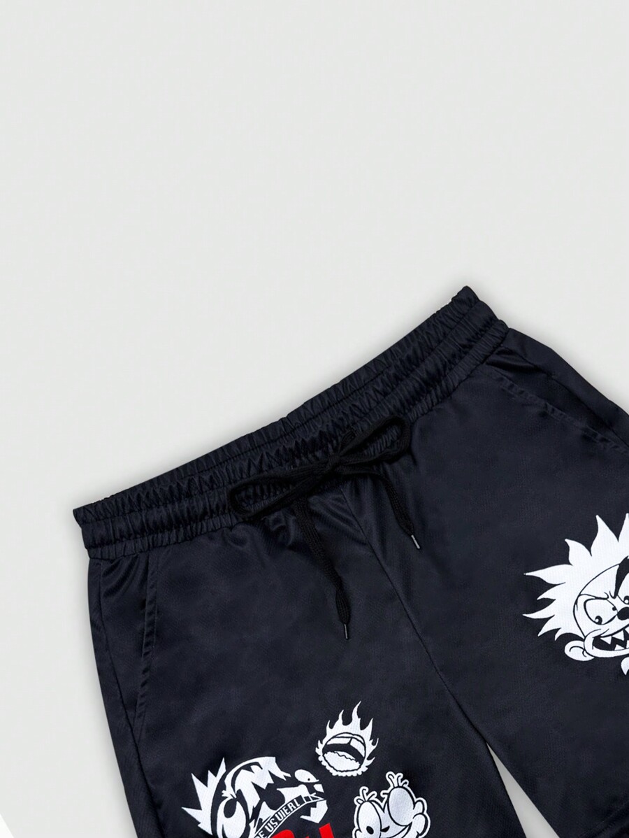 Anime 1pc Men's Letter & Cartoon Print Drawstring Waist Relaxed Casual Basketball Shorts