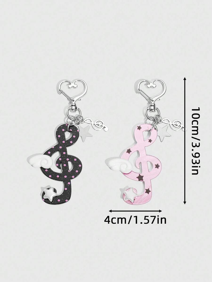 Anime 2pcs Y2K Style Music Note & Star Decor Keychains, Subculture Polka Dot Black Music Note Bag Charms, Suitable For Back To School Season Teenagers & Students Keychain Accessories