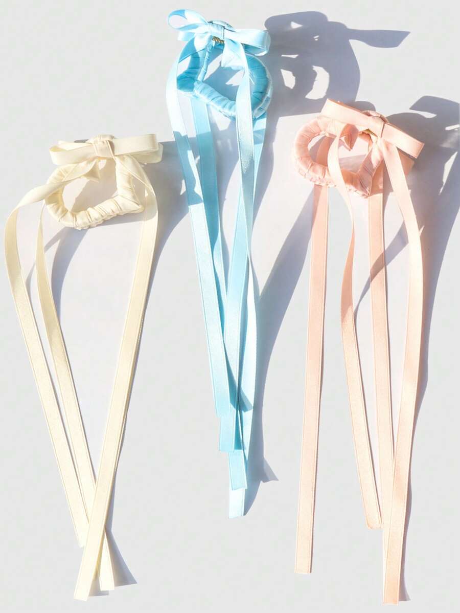 Anime 3pcs Ribbon Tassel Heart Shaped Hair Jaw Clips, Hair Accessories For Ponytail, Messy Bun, Hair Bows