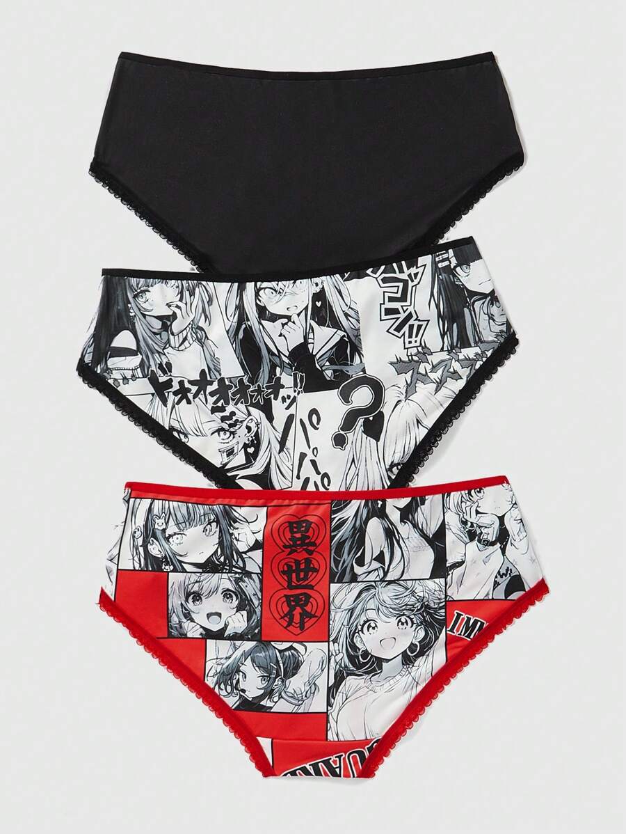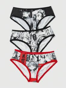 Anime 3pcs Set Cartoon Character Lace Trimmed Panties