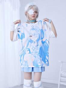 Anime Cartoon Yandere Girl Pink Loose Round Neck Short Sleeve T-Shirt