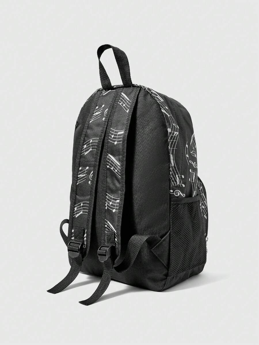 Anime Collegiate Style Black Keyboard Notes Pattern Lightweight Large Capacity Multi-Pocket Backpack, Personalized Fashion Casual Unisex Backpack Suitable For Commuting, School, Travel, All Seasons
