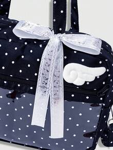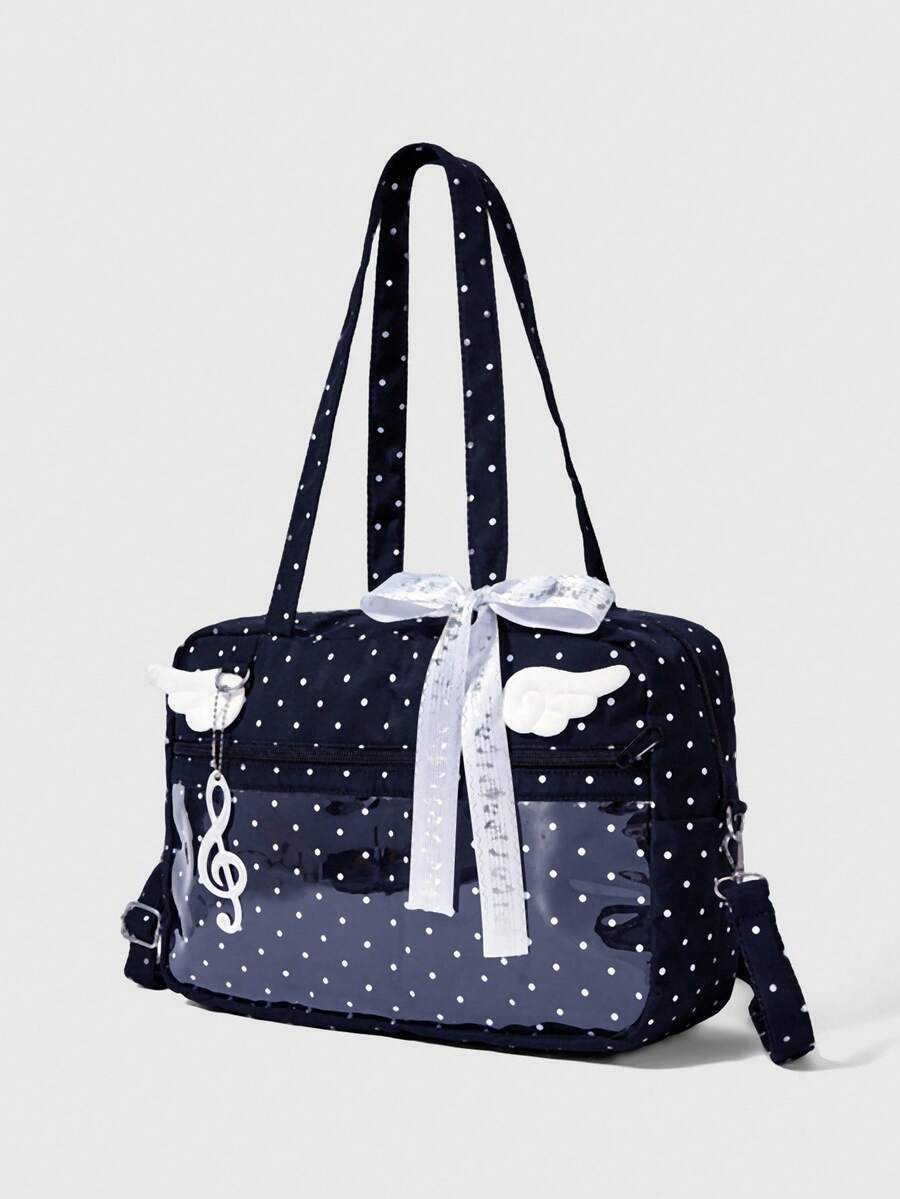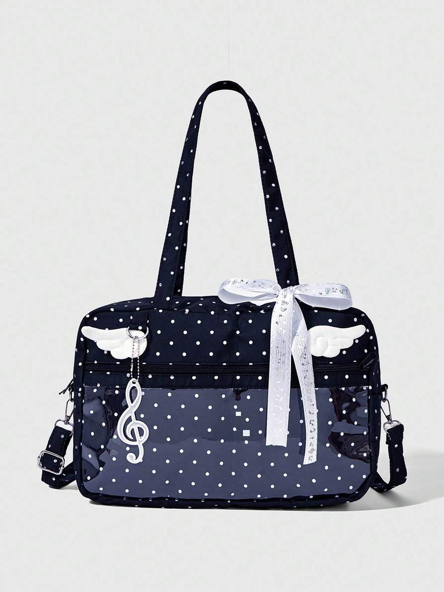 Anime Cute Polka Dot Wing Handbag Shoulder Crossbody Bag, Y2K Versatile Commute Tote Bag Large Capacity + Musical Note Strap