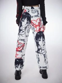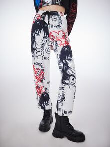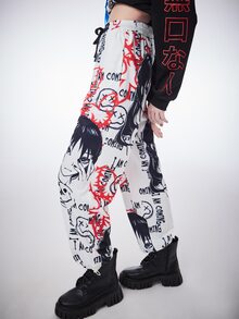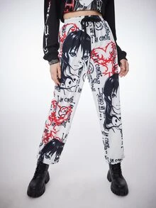 Anime Figure Graphic Drawstring Waist Sweatpants