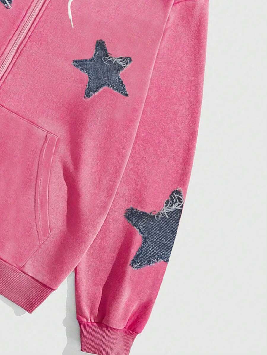 Anime Men's Casual Star Print Drawstring Hoodie Sweatshirt