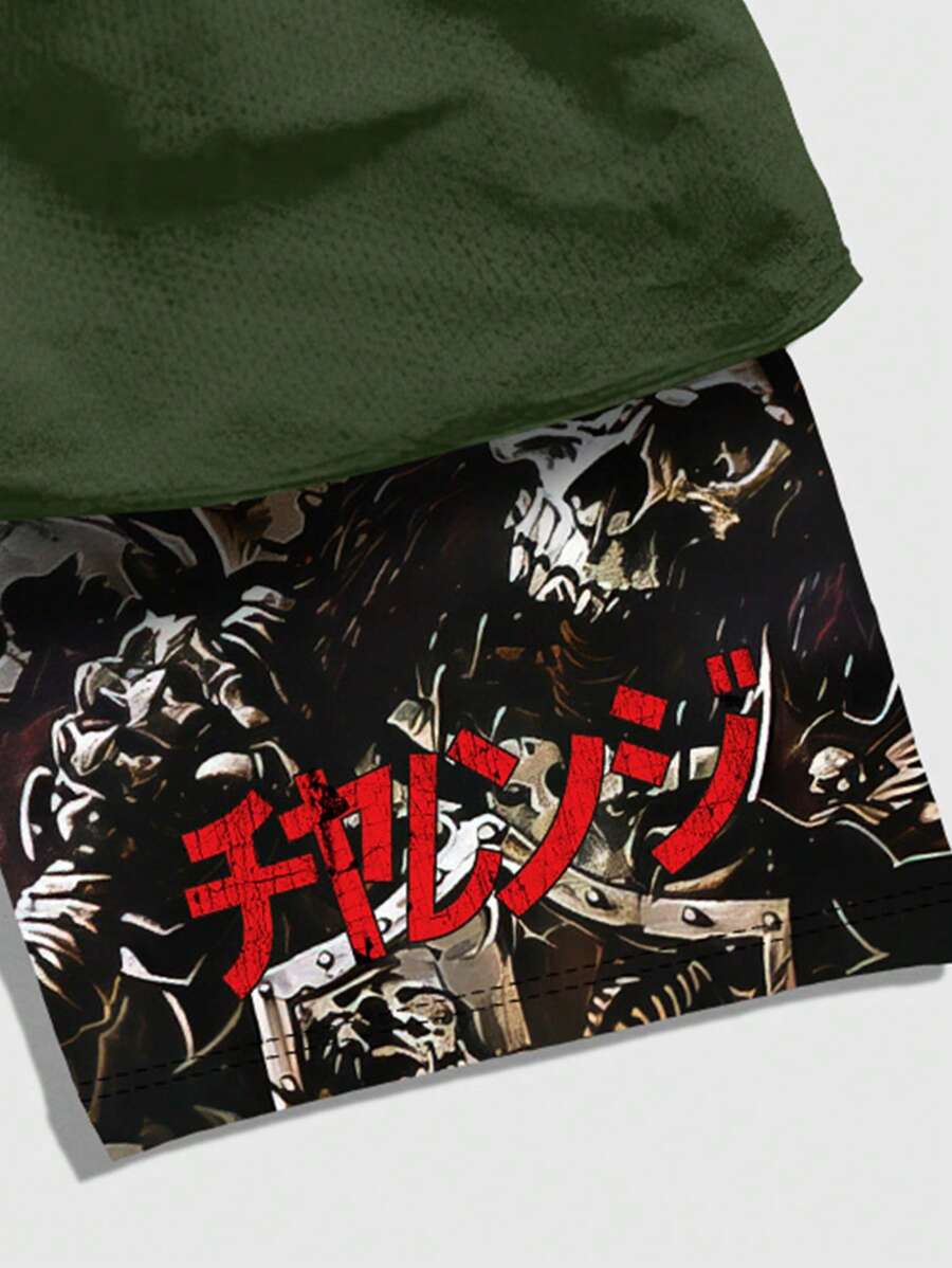 Anime Men's Front Tie Dye Print Layered Casual Shorts, Daily Wear