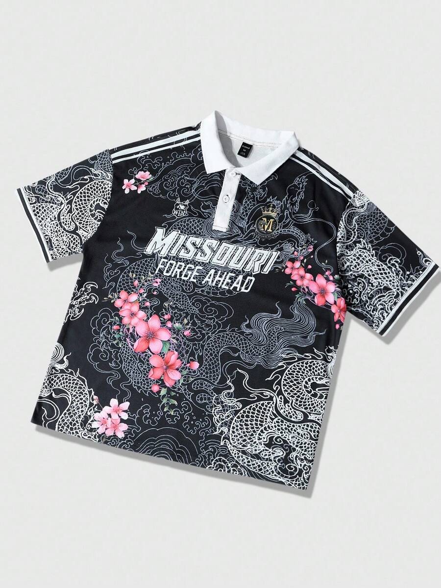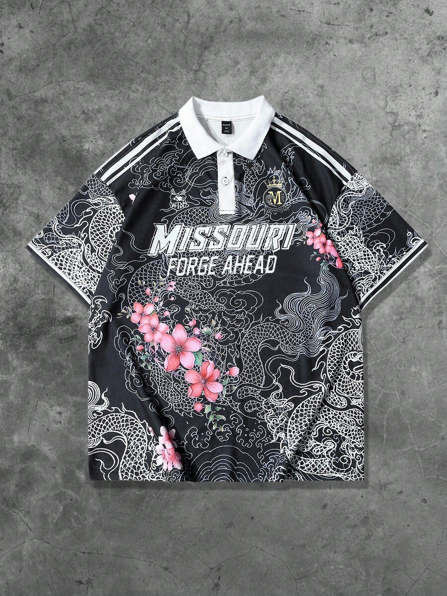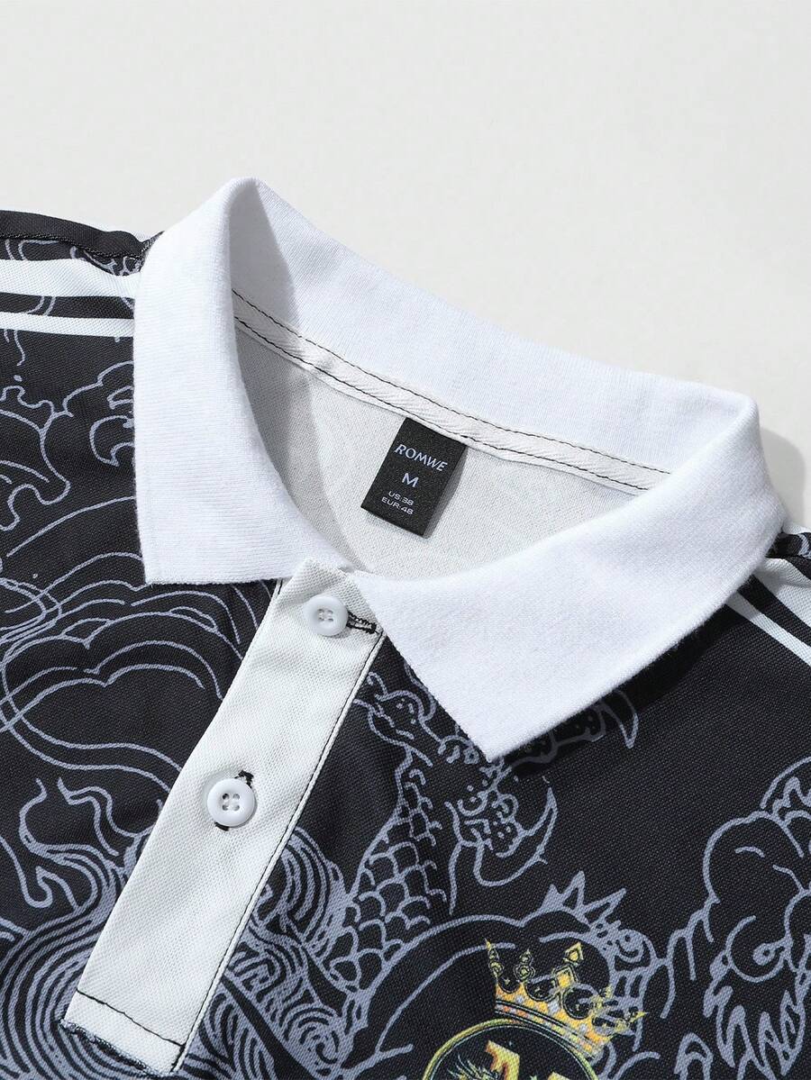 Anime Men's Street Dragon Graphic Print Polo Shirt, Suitable For Everyday Wear, Spring/Summer