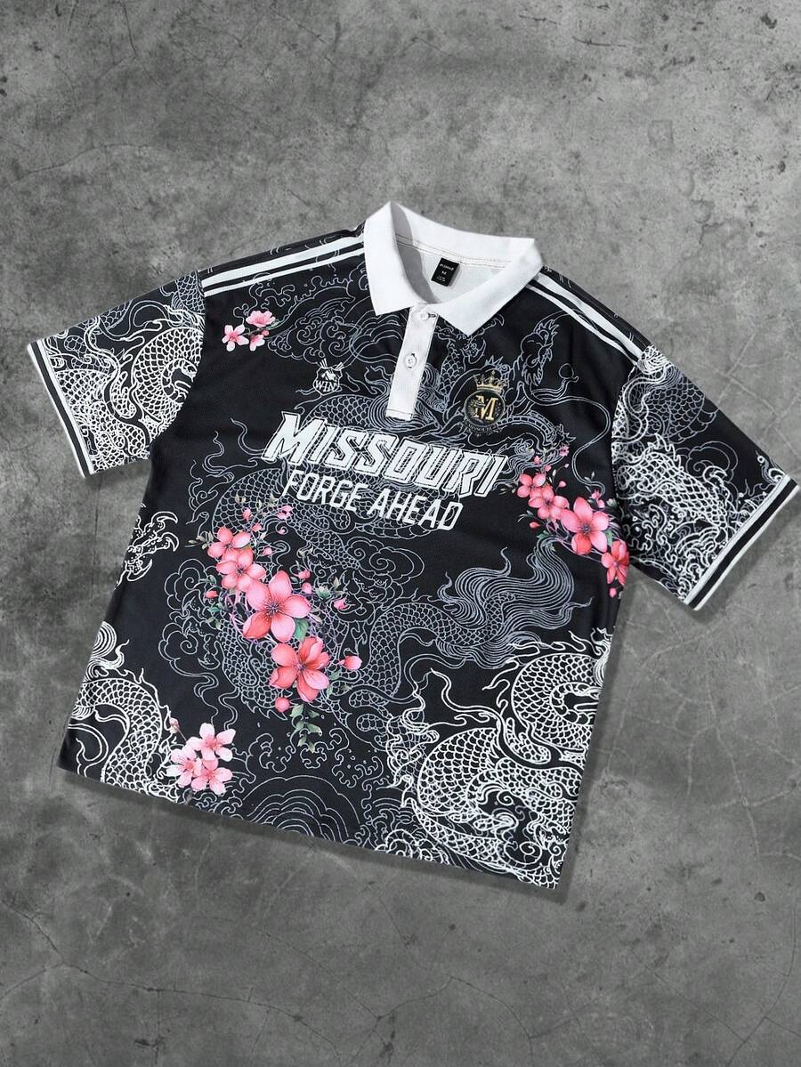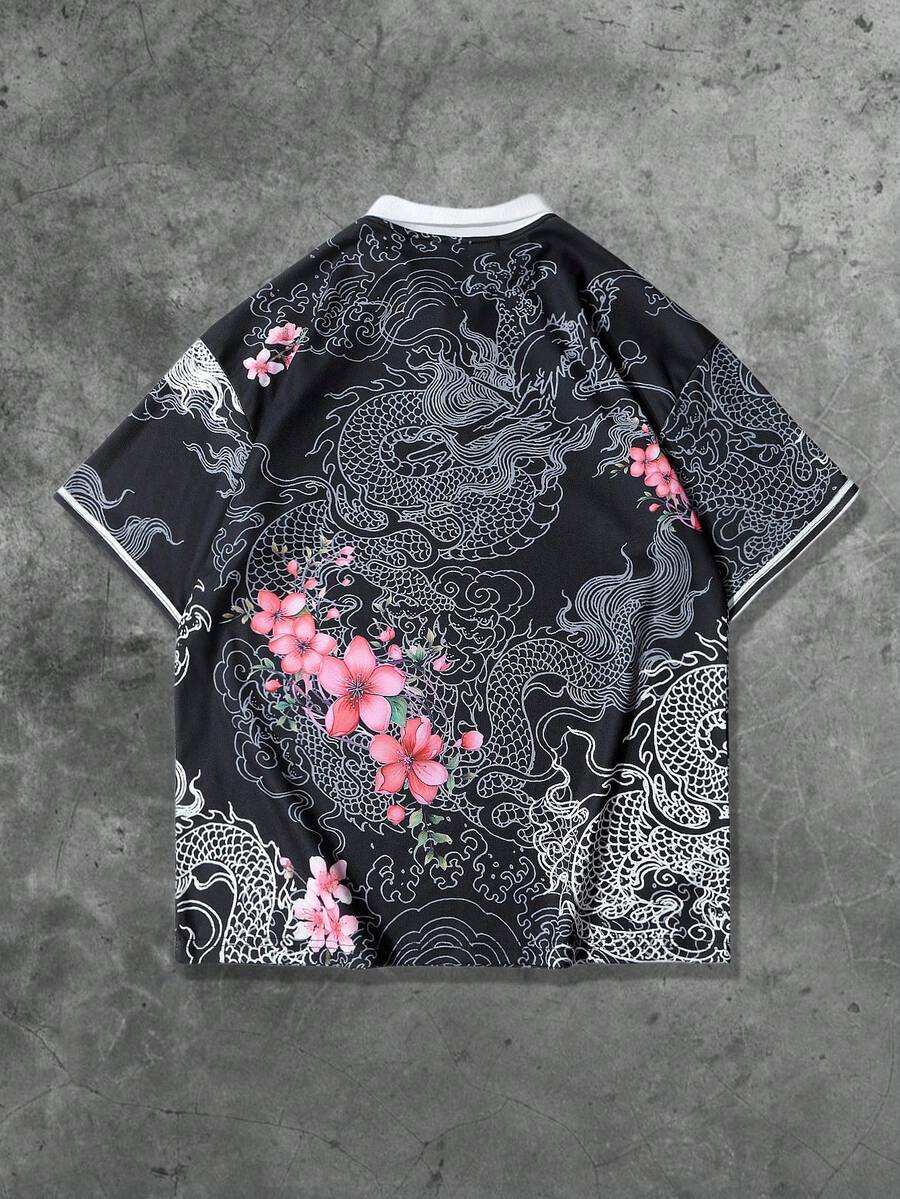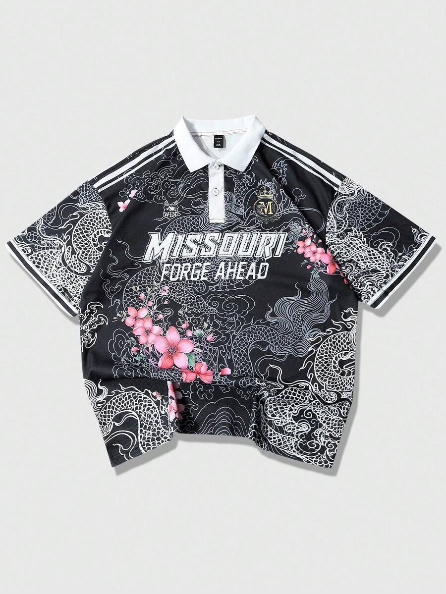 Anime Men's Street Dragon Graphic Print Polo Shirt, Suitable For Everyday Wear, Spring/Summer
