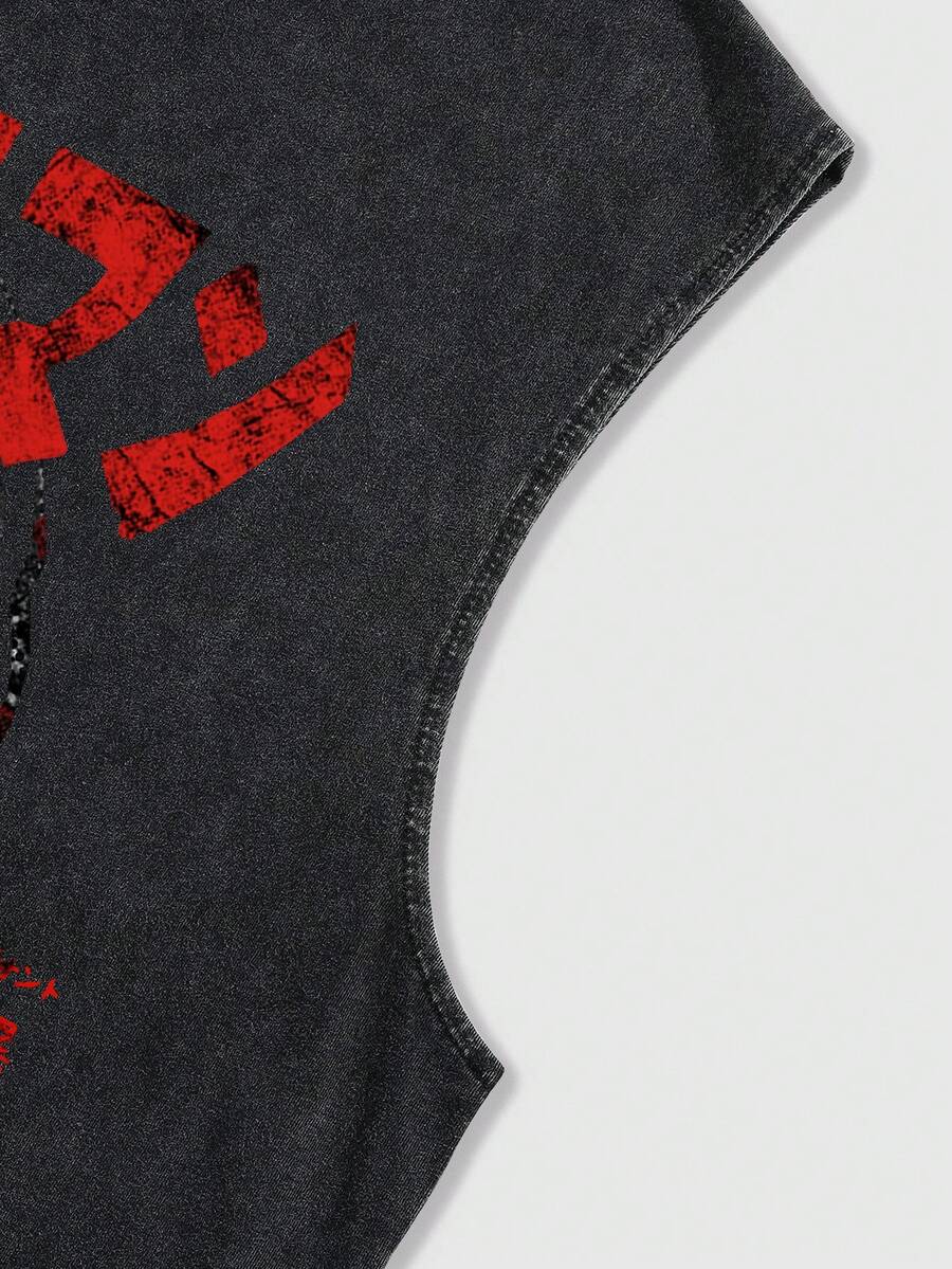 Anime Men's Summer Japan Style Figure Print Washed Distressed Sleeveless Vest