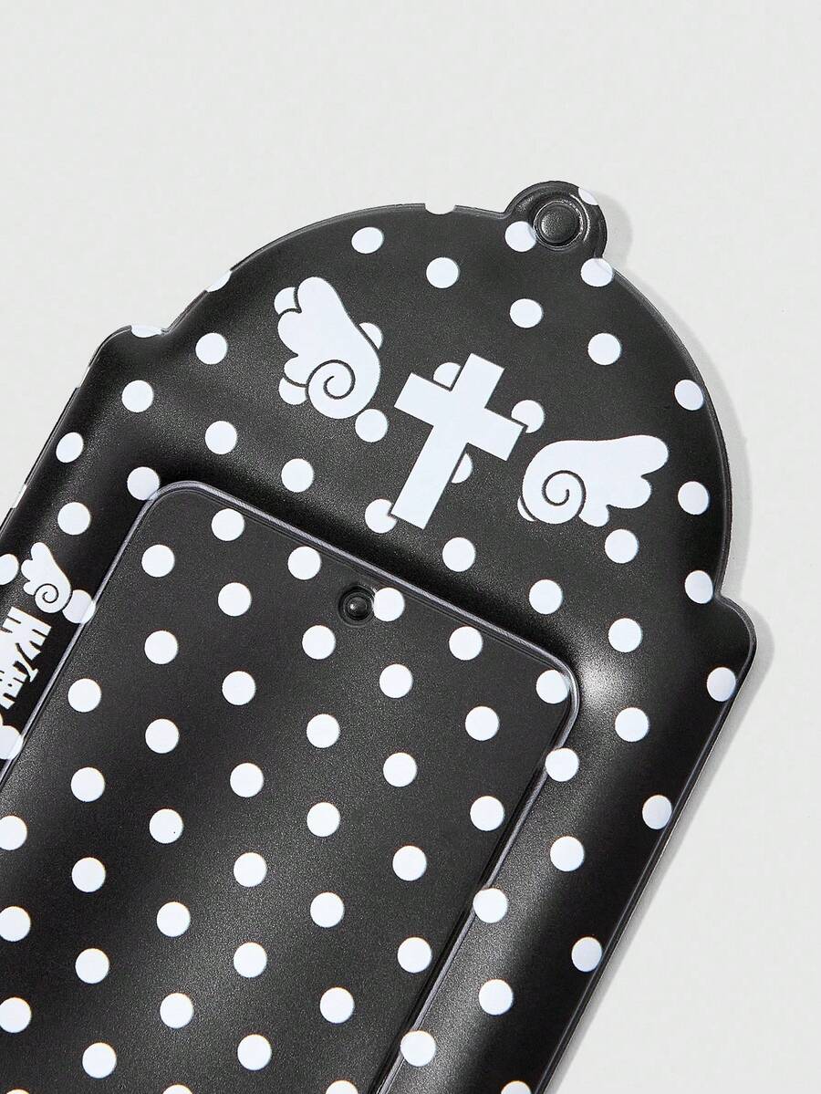 Anime Polka Dot, Heart, Wing, Cross Print Multi-Purpose Black Protection Case For Card, ID, Badge Holder, Bag Charm Accessory