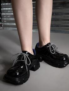 Anime Women Buckle Decor Square Toe Shoes, Punk Black Oxford Shoes