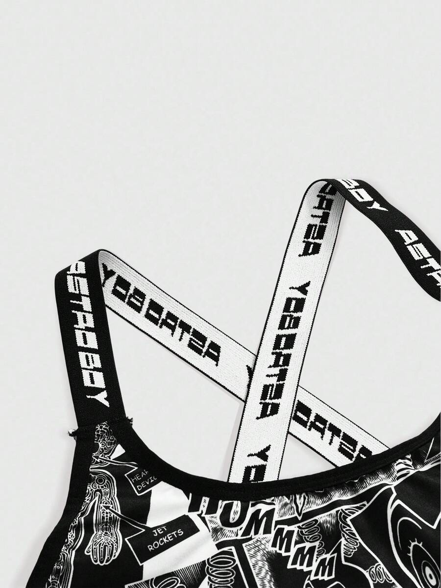 Astro Boy X ROMWE Cartoon Figure Graphic Elastic Criss-Cross Back Bralette & Thong Lingerie Set