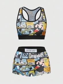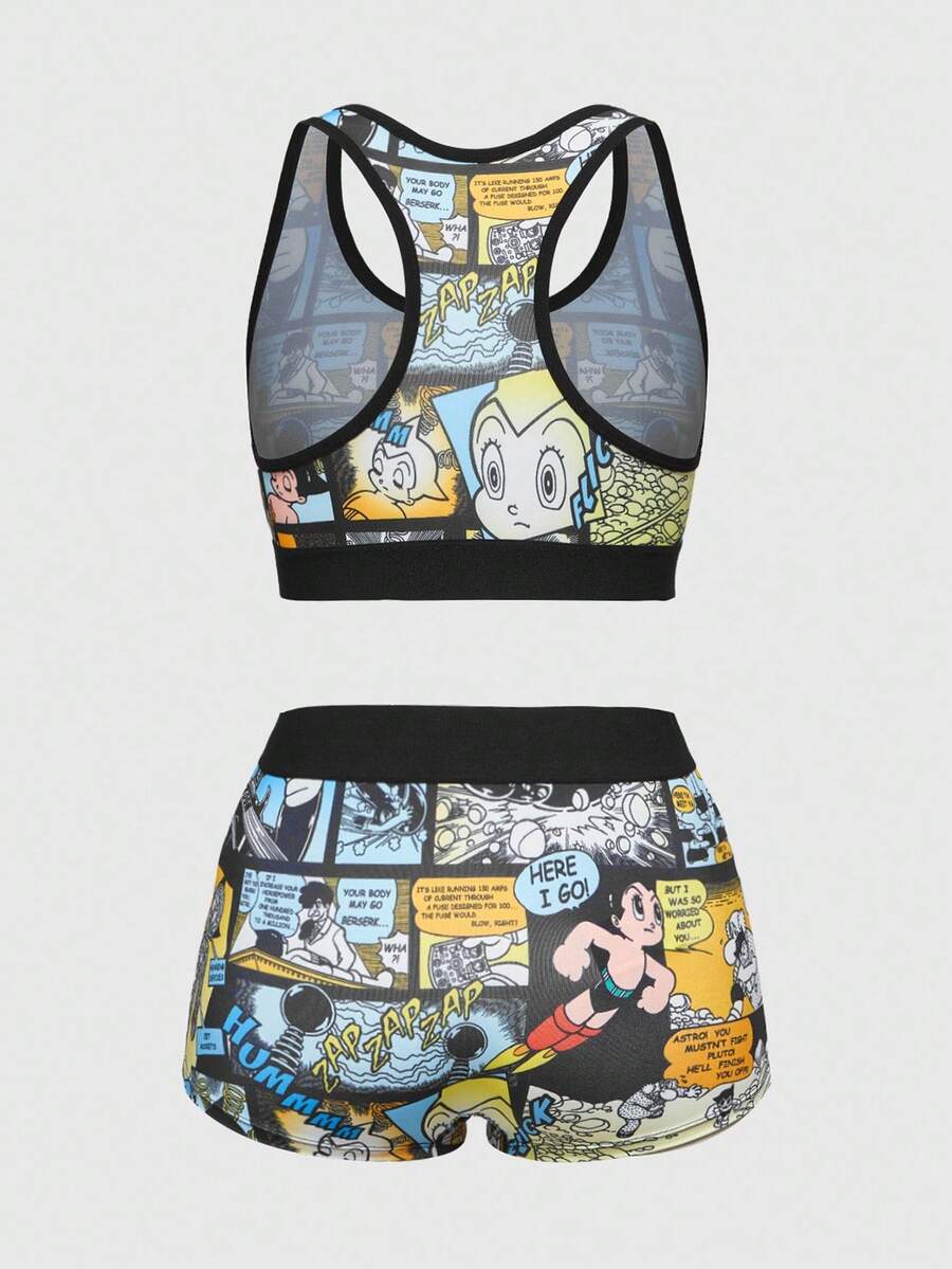 Astro Boy X ROMWE Pop Art Print Wireless Racerback Sports Bra & Boxy Panty Set