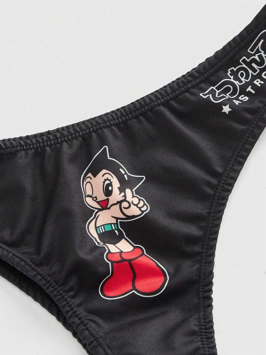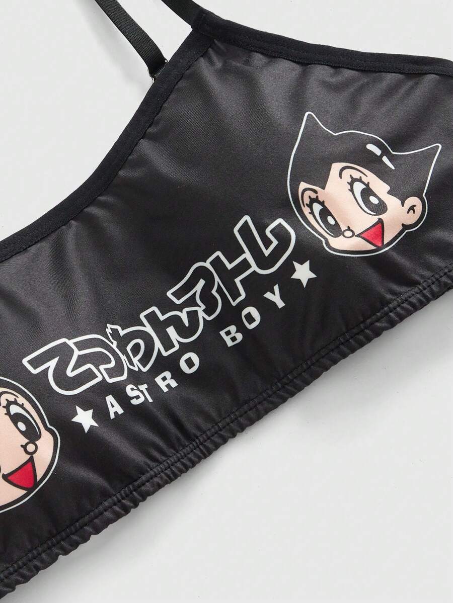 Astro Boy X ROMWE Women Cartoon Graphic Bra & Thong Lingerie Set