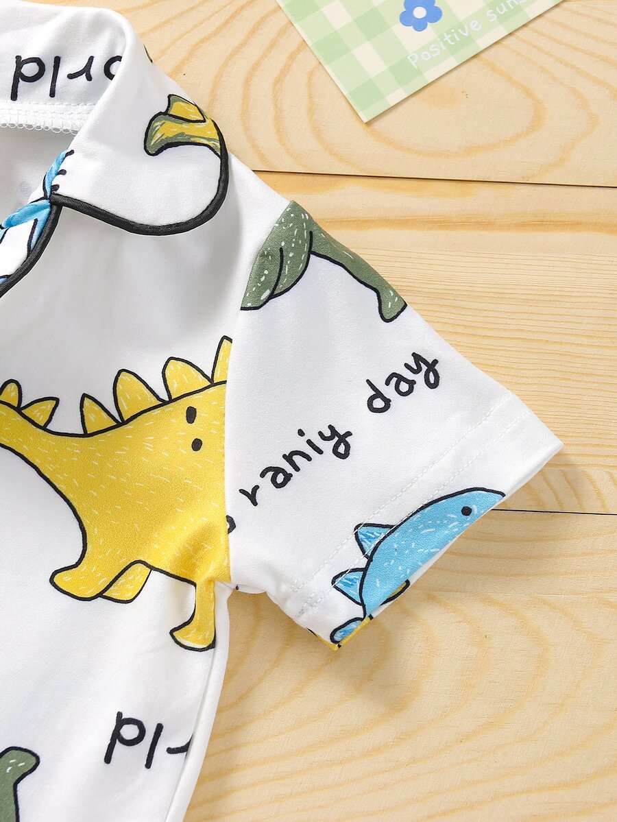 Baby Boy Dinosaur And Letter Graphic Shirt & Shorts