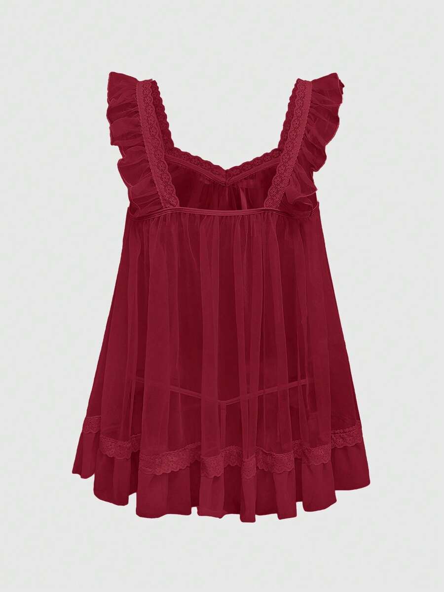 Babydoll Kawaii Cute Loose Sheer Dress, Mesh Lace Patchwork Bow Mini Dress, Sexy Tulle Dress Set