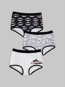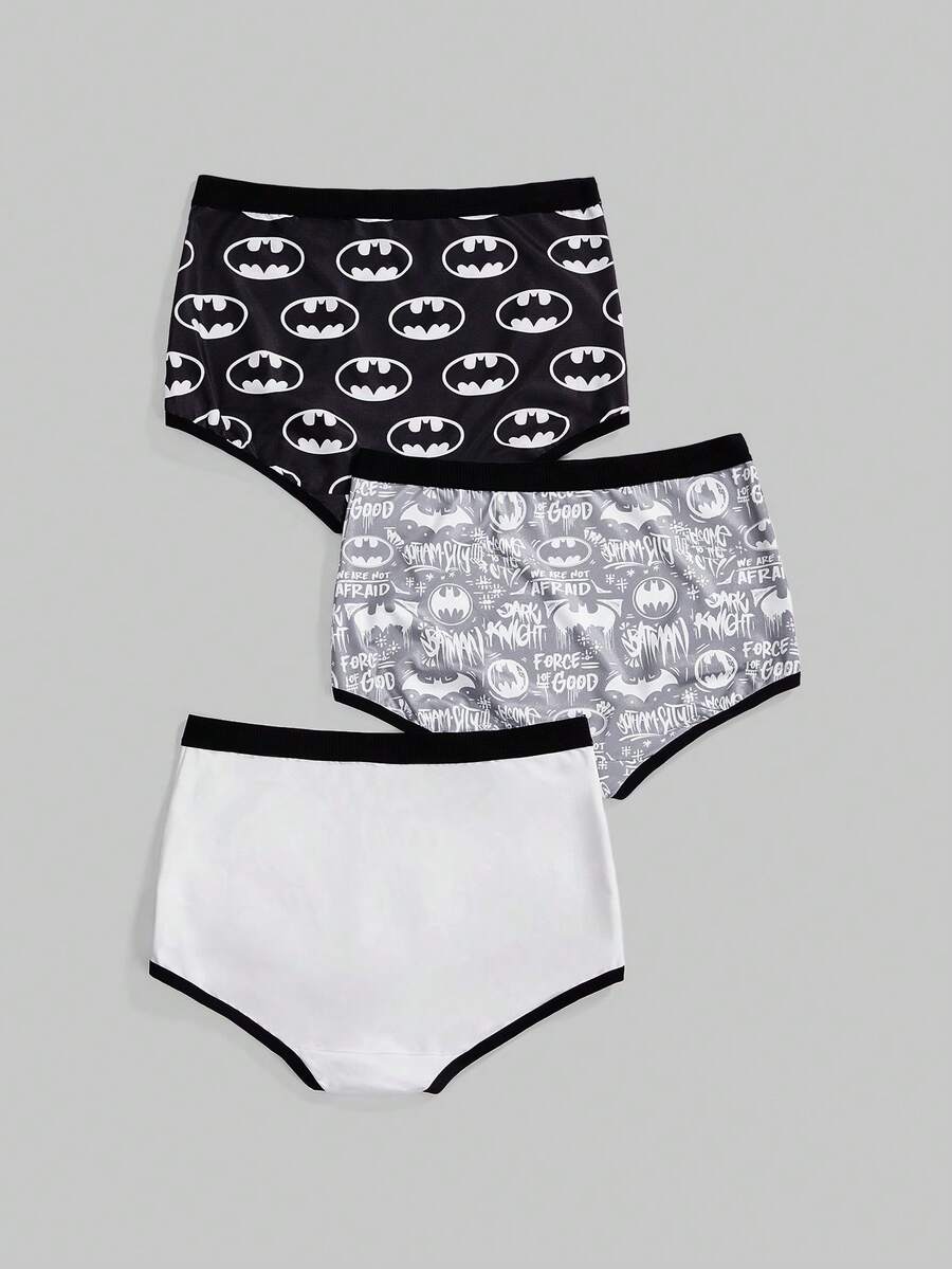 Batman X ROMWE 3pcs Women Bat Logo Print Contrast Binding Boyshorts
