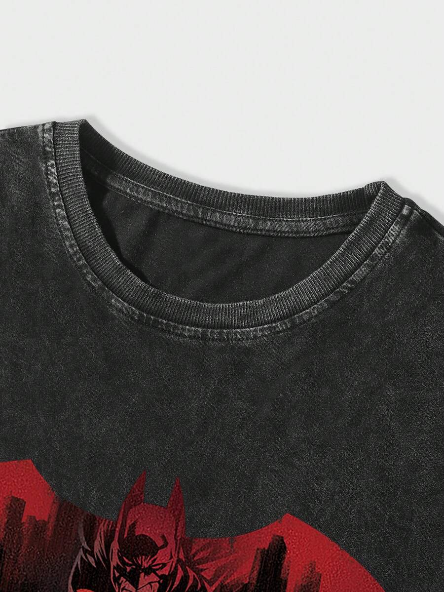 Batman X ROMWE Men Letter Graphic Drop Shoulder Tee, School