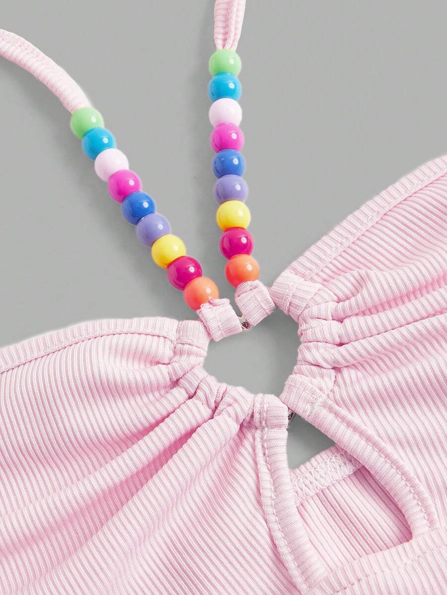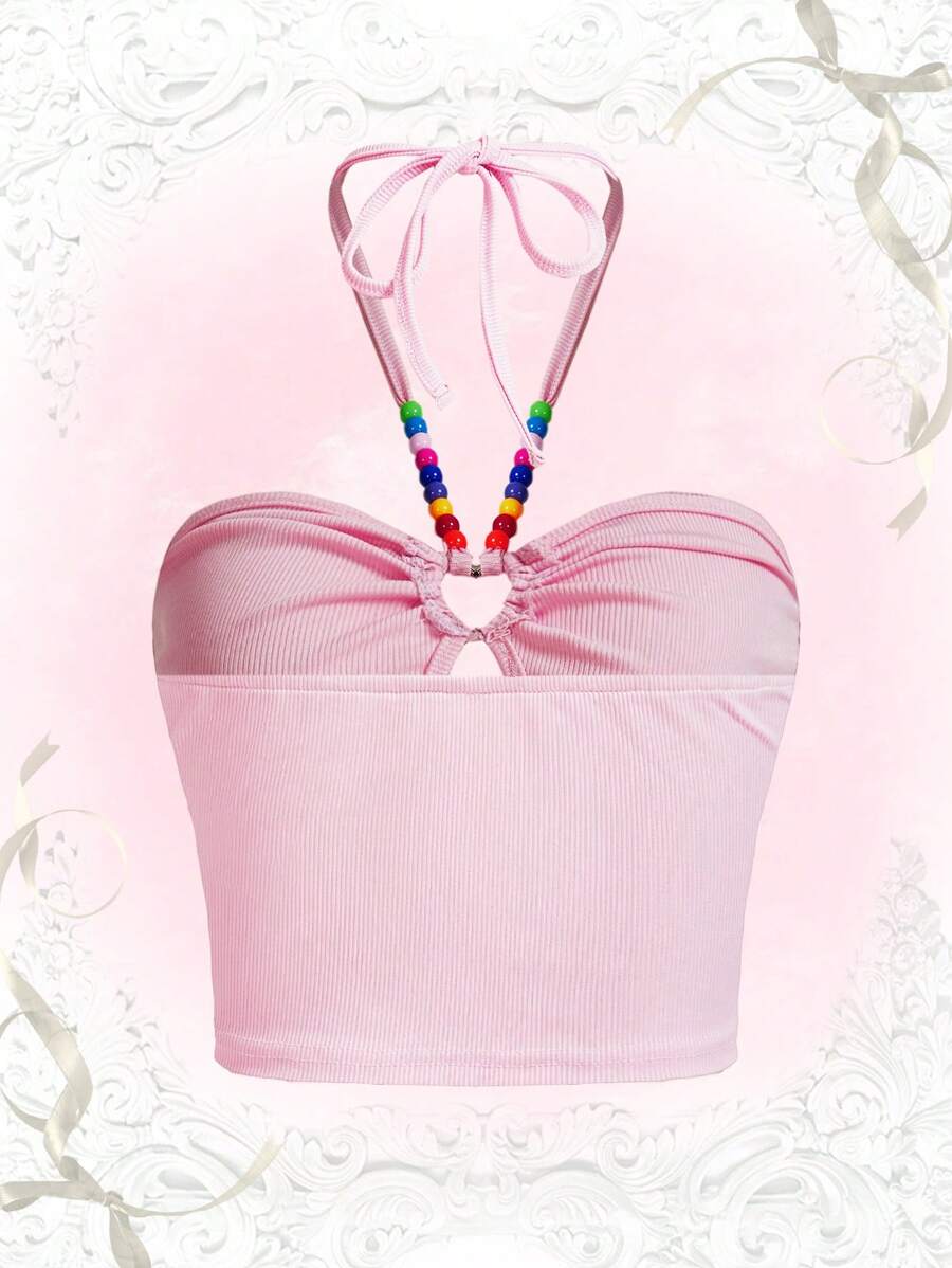 Beaded Detail Cut Out Halter Top