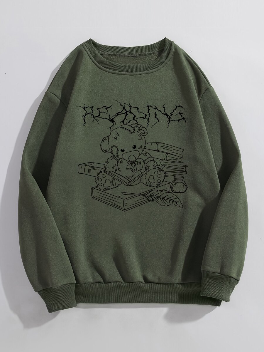 Bear & Letter Graphic Thermal Lined Sweatshirt