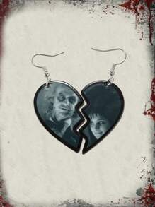 Beetlejuice | ROMWE 1pair Heart Shaped Dangle Earrings With Portrait Print And Cracks