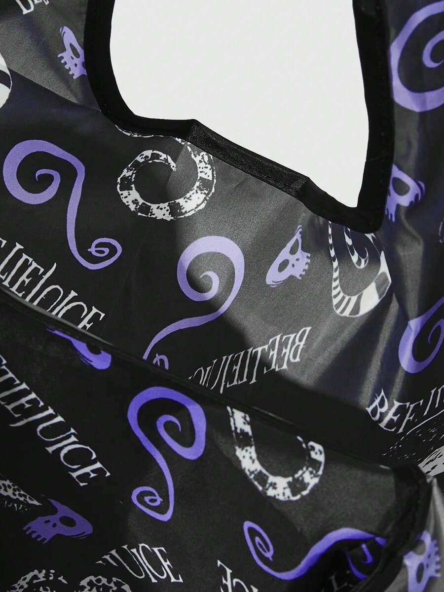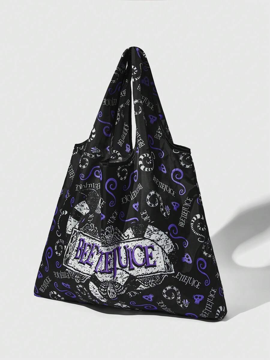Beetlejuice | ROMWE Cartoon & Letter Print Storage Bag, Large Capacity Foldable Tote Bag With Coin Purse