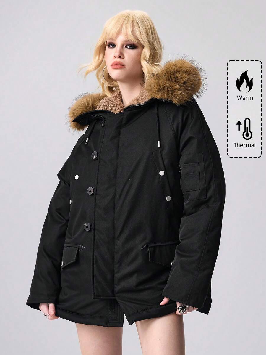 Bestselling Faux Fur Collar Padded Padded Coat, Thick Warm Casual Parka For Women, Loose Fit Fashion Outerwear, New Arrival Winter
