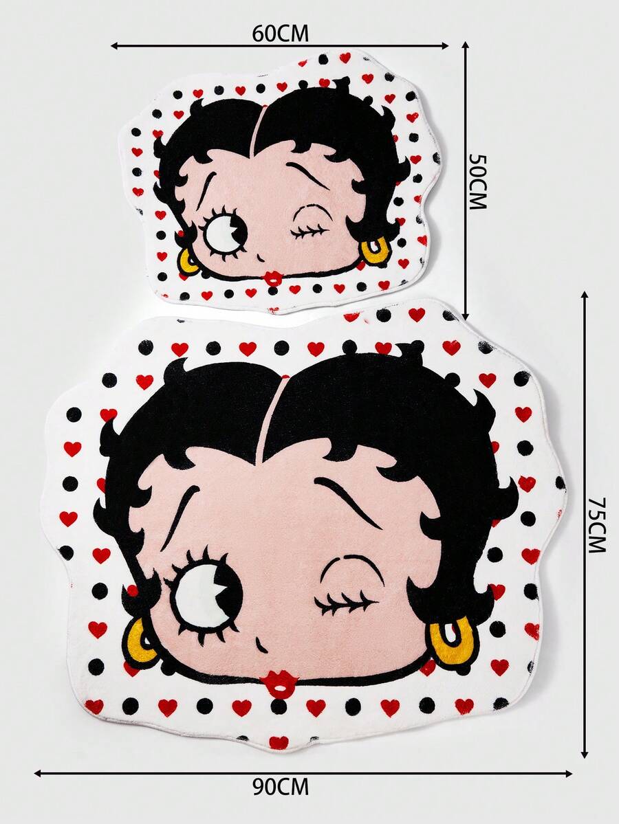 Betty Boop | ROMWE 1pc Cartoon Figure And Heart Polka Dot Print Door Mat With White Edging, Non-Slip Cashmere-Like Cute Carpet