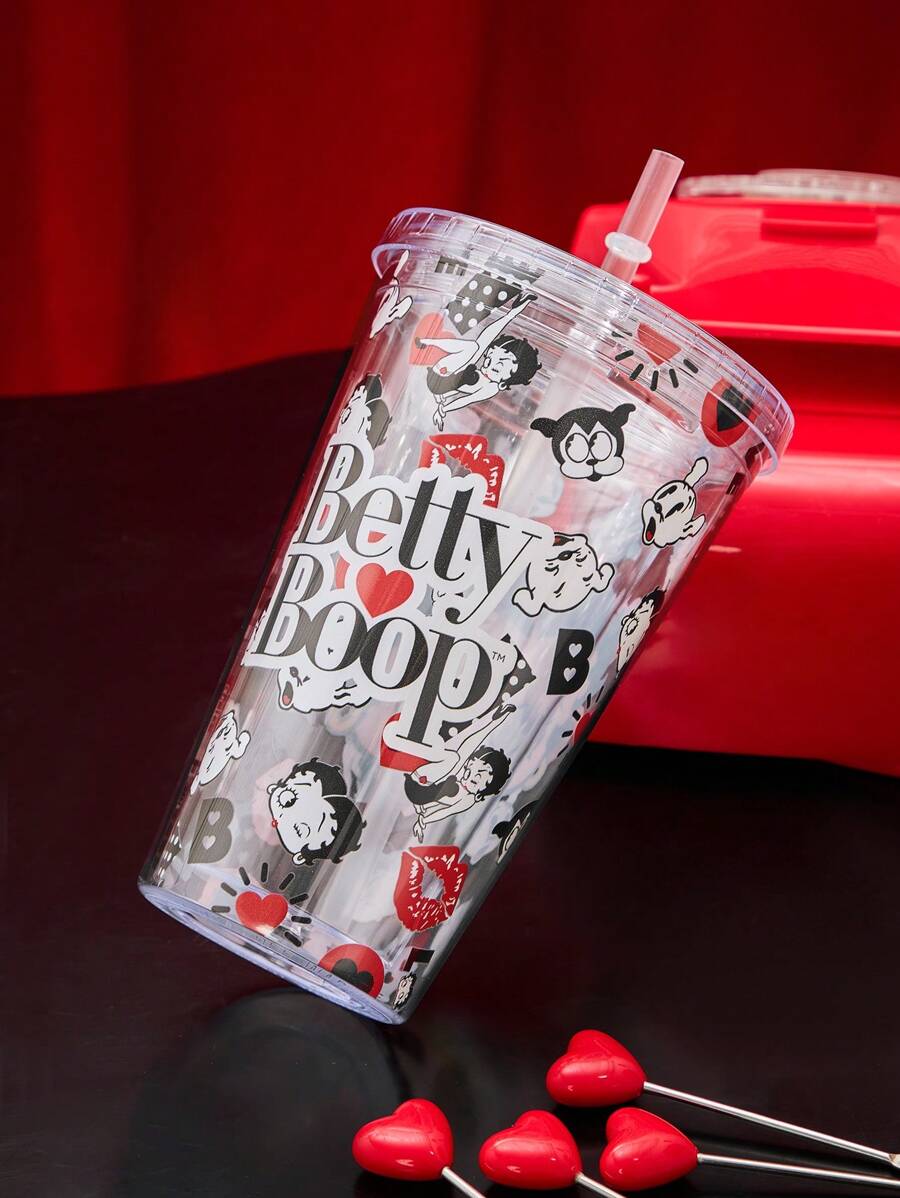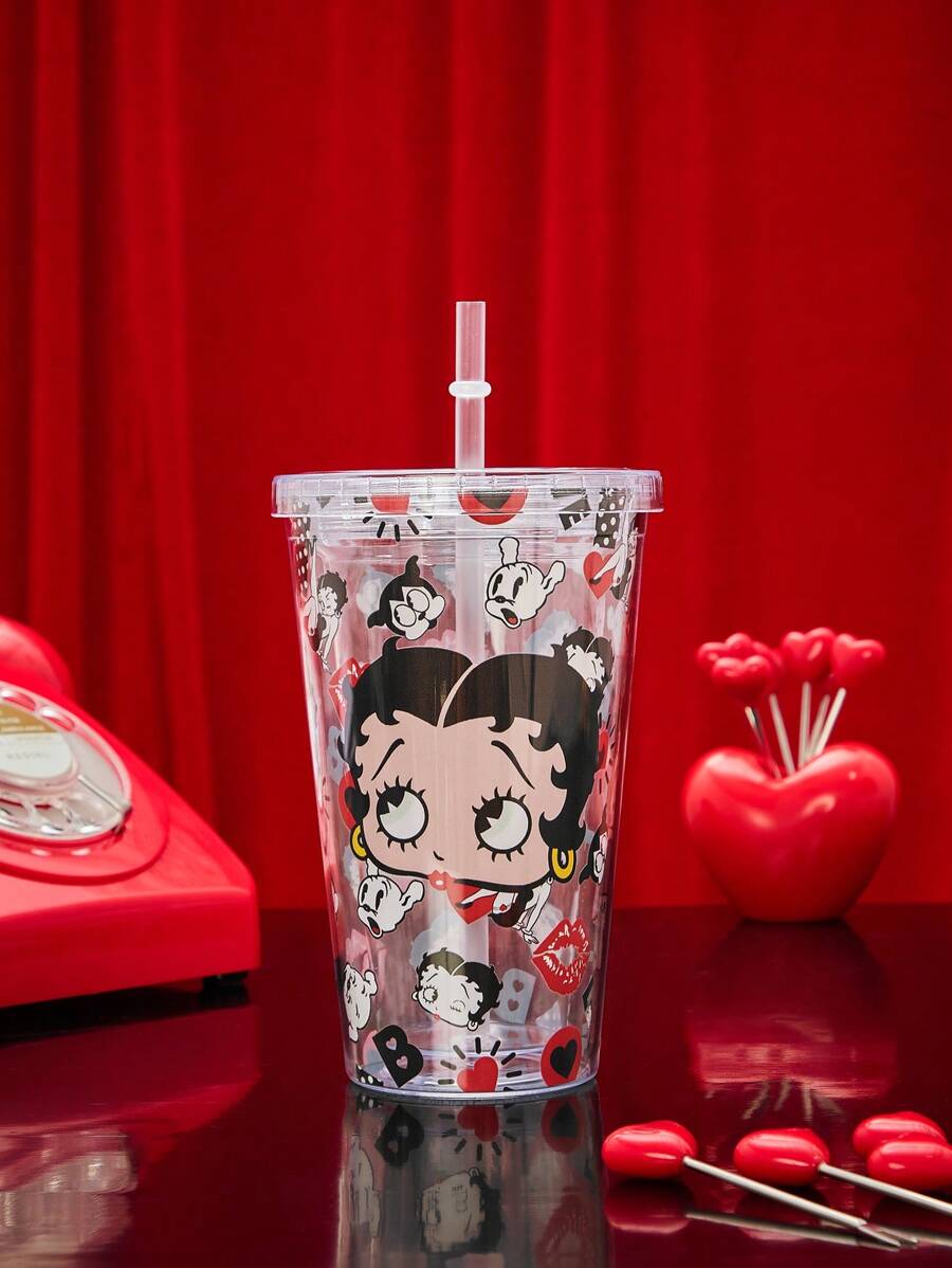 Betty Boop | ROMWE Cartoon Print Transparent Flat Bottom Straw Cup