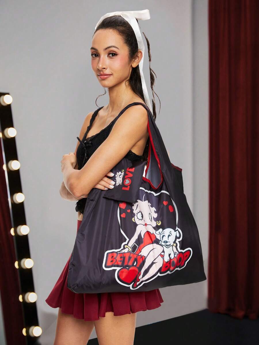 Betty Boop | ROMWE Cartoon Sweet And Lovely Betty Storage Bag, Large Capacity Portable And Foldable Shopping Tote Bag With Coin Purse