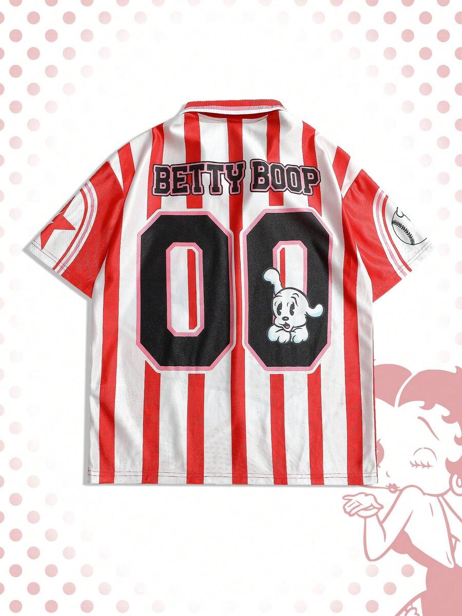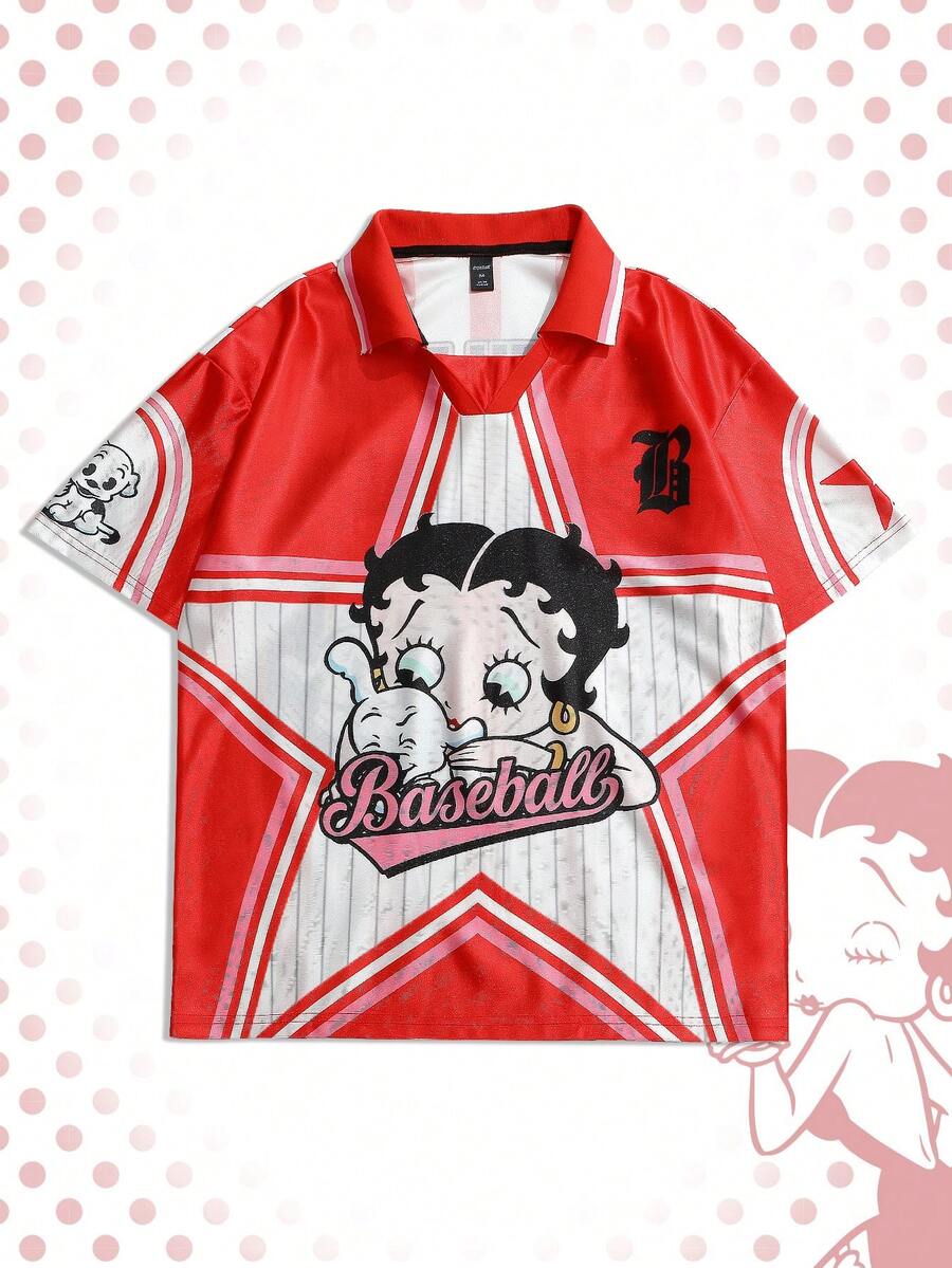 Betty Boop | ROMWE Men's Casual Cartoon Figure Graphic & Star Print Short Sleeve Polo Shirt, Summer