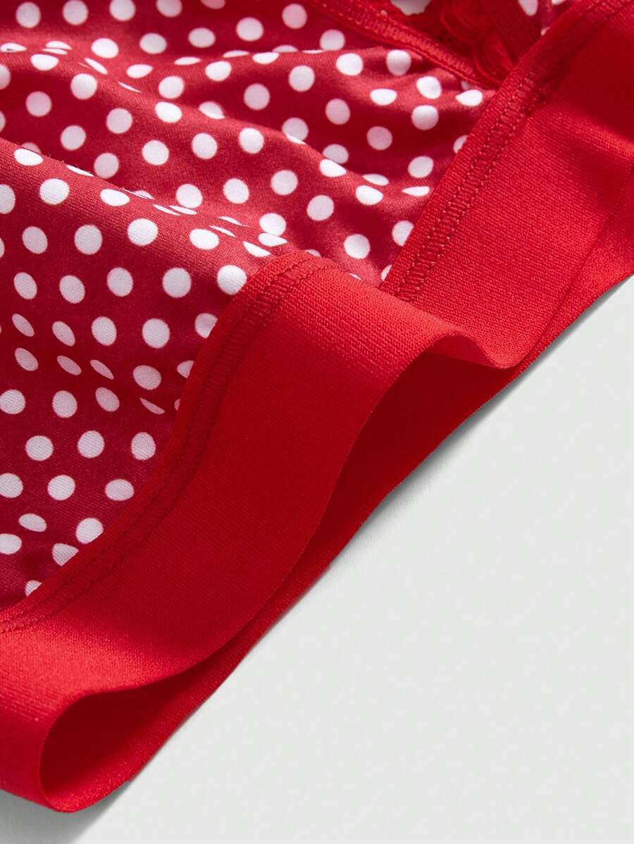 Betty Boop | ROMWE Plus Size Women Lace Patchwork Polka Dot Cartoon Pattern Non-Wired Lingerie Bra