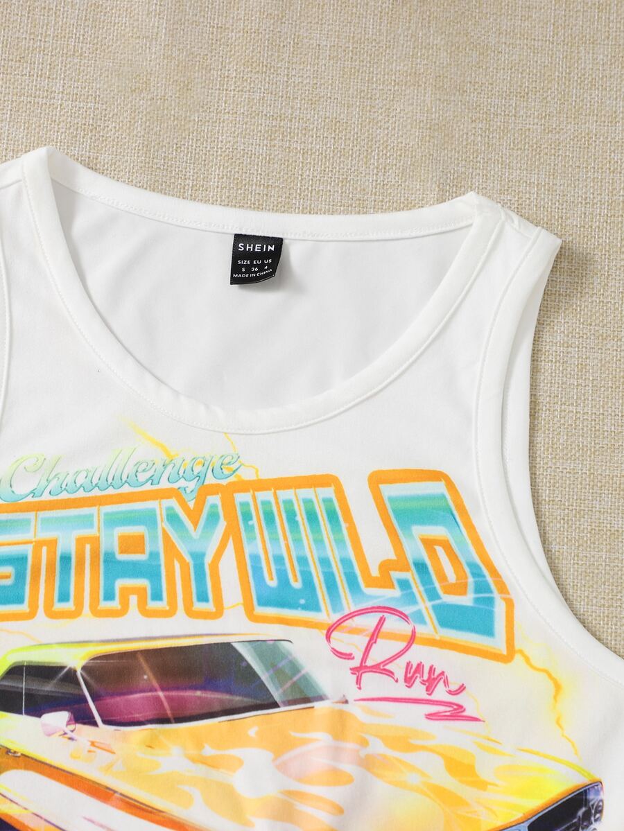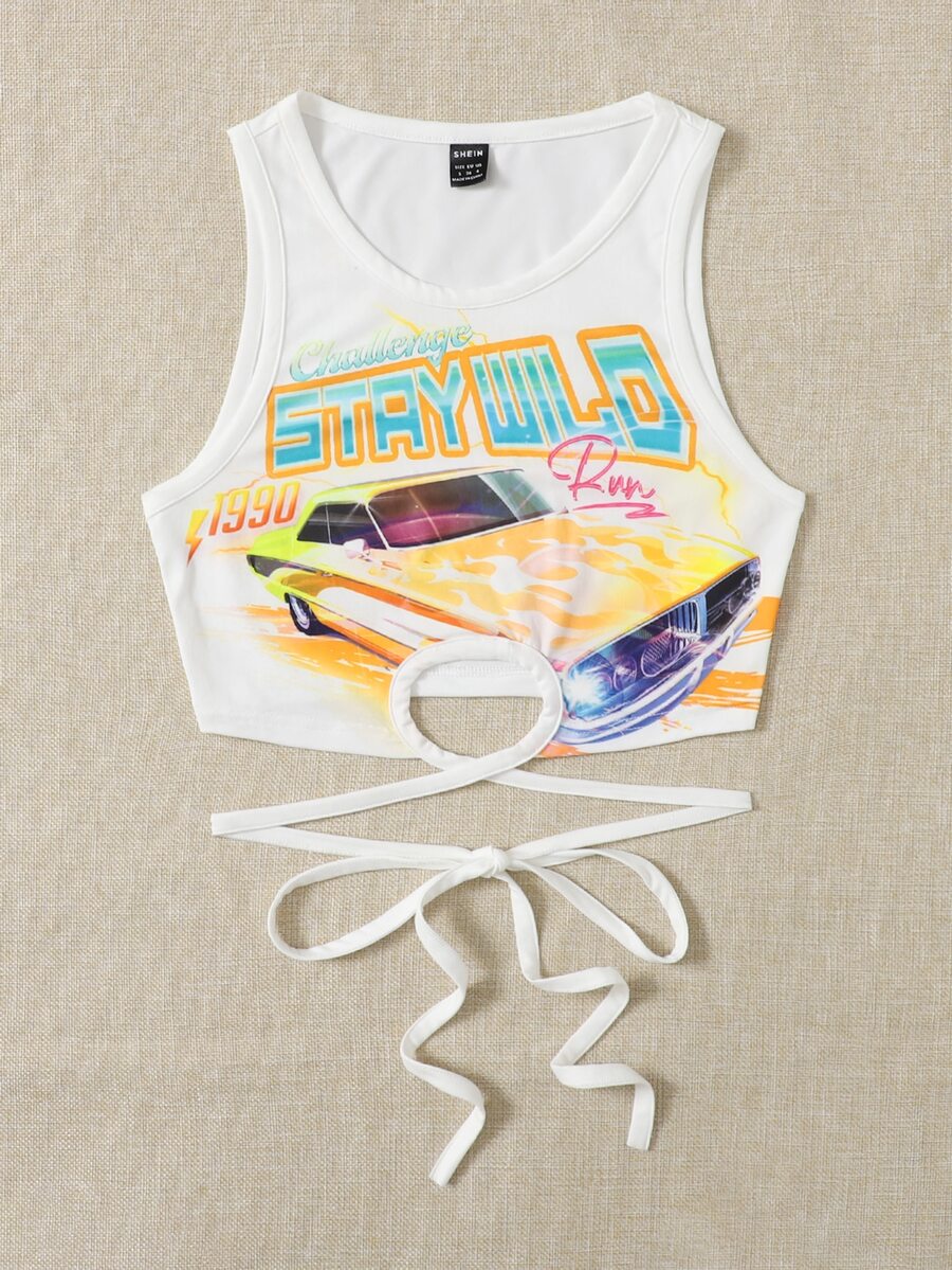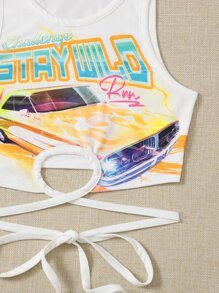 Bikercore 90s Letter Graphic Tie Back Crop Tank Top