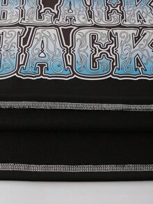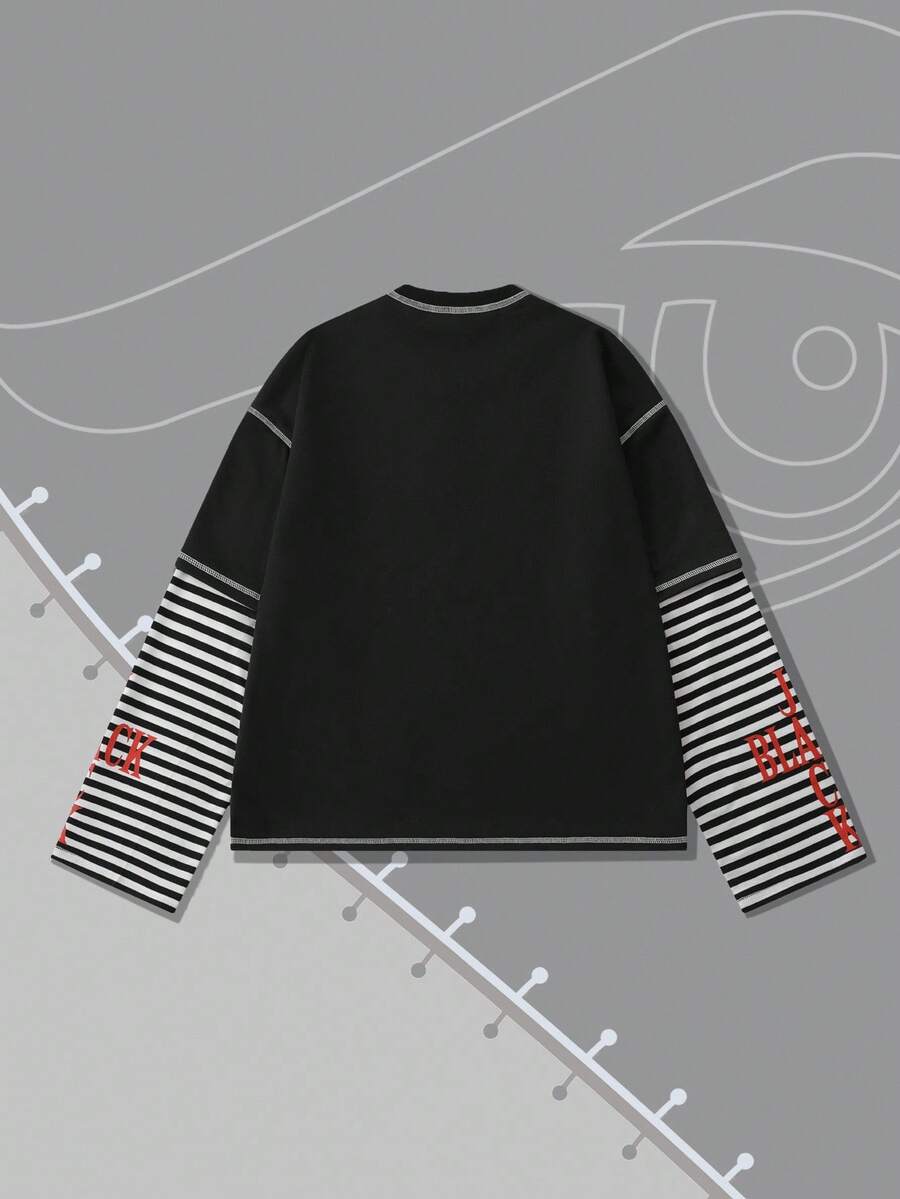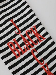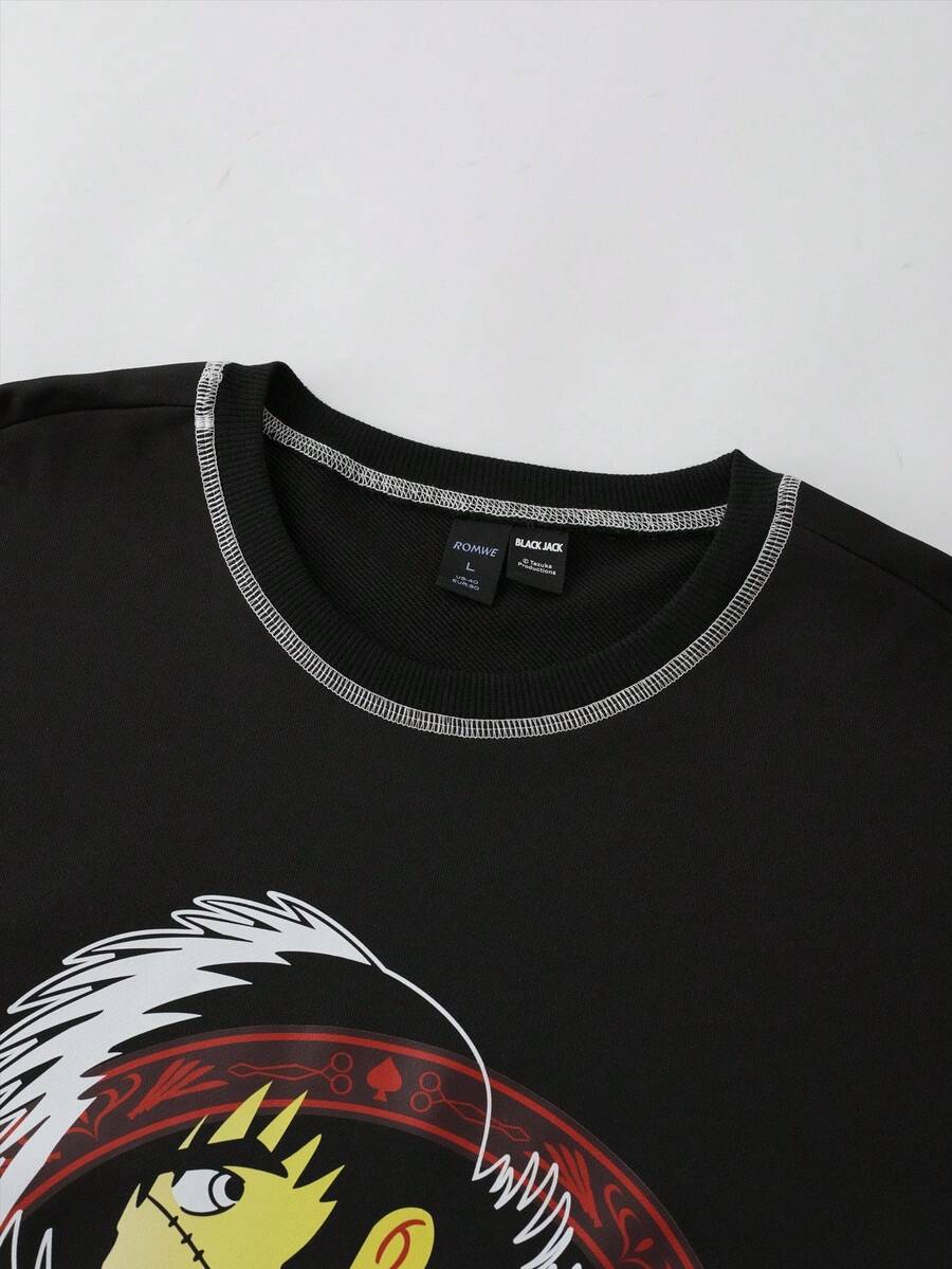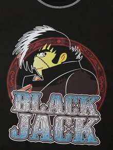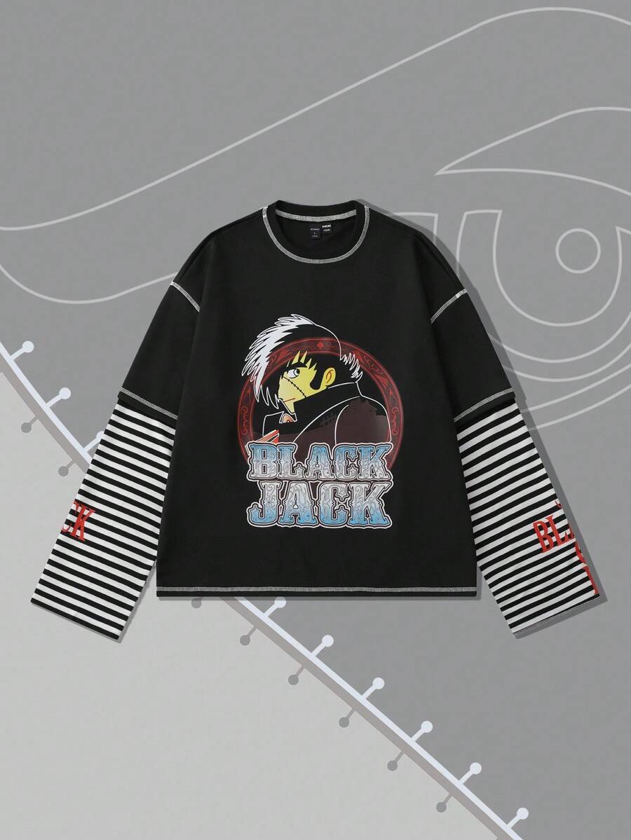 Black Jack X ROMWE Men's Striped & Cartoon Figure Graphic Black Loose Short T-Shirt, Fall