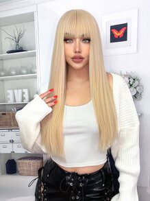 Blonde Long Straight Hair Wigs With Bangs 26 Inch Fashion Women's Wigs Synthetic Heat Resistant Wigs Daily Used Hair Beginner Friendly,Suitable For Various Occasions, Including , Christmas, New Year, Parties, Vacations, Winter