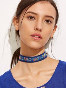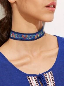 Blue Floral Ribbon Choker Necklace
