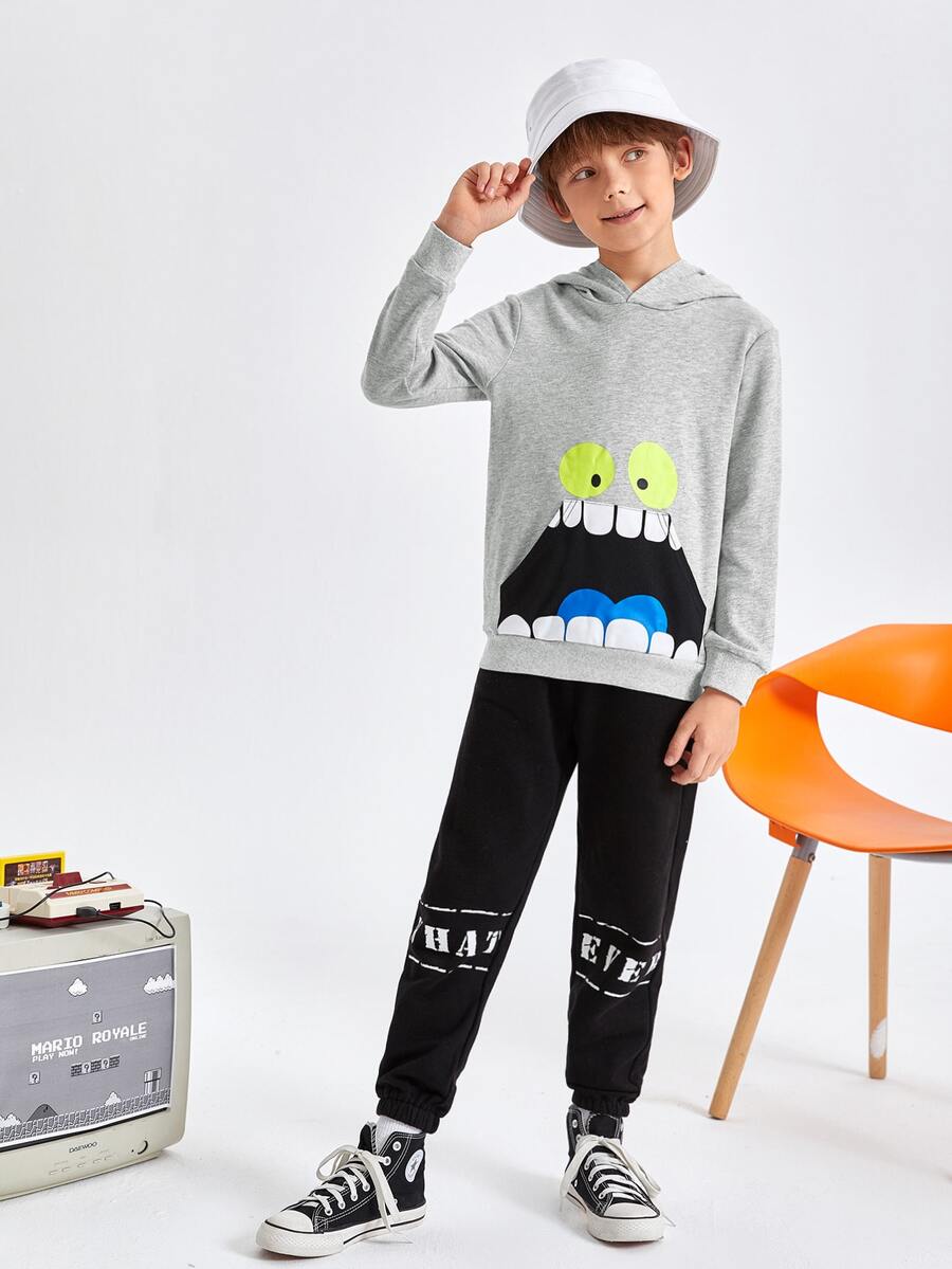 Boys Cartoon Graphic Pouch Pocket Hoodie