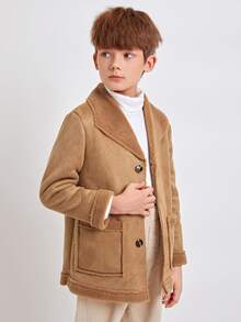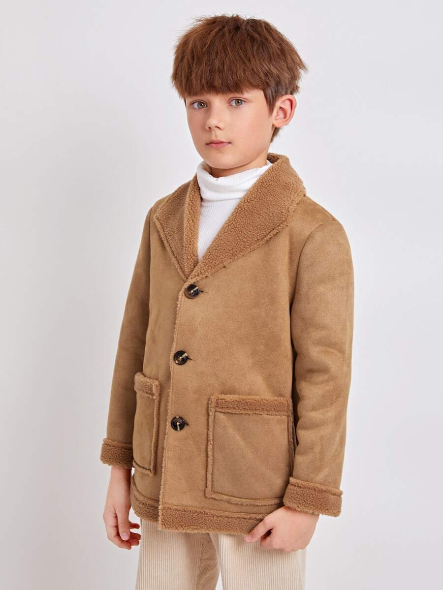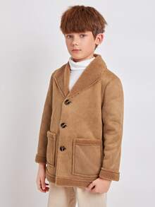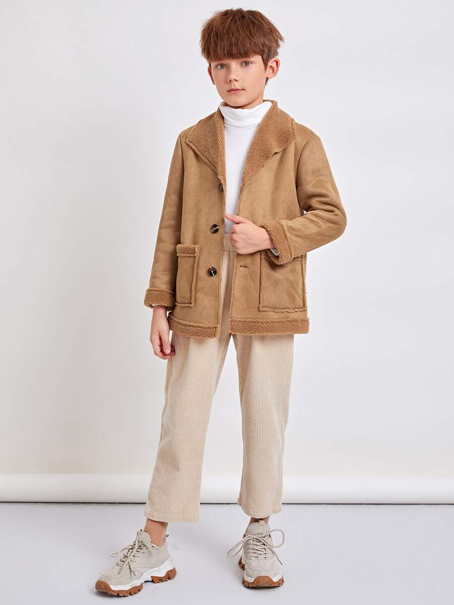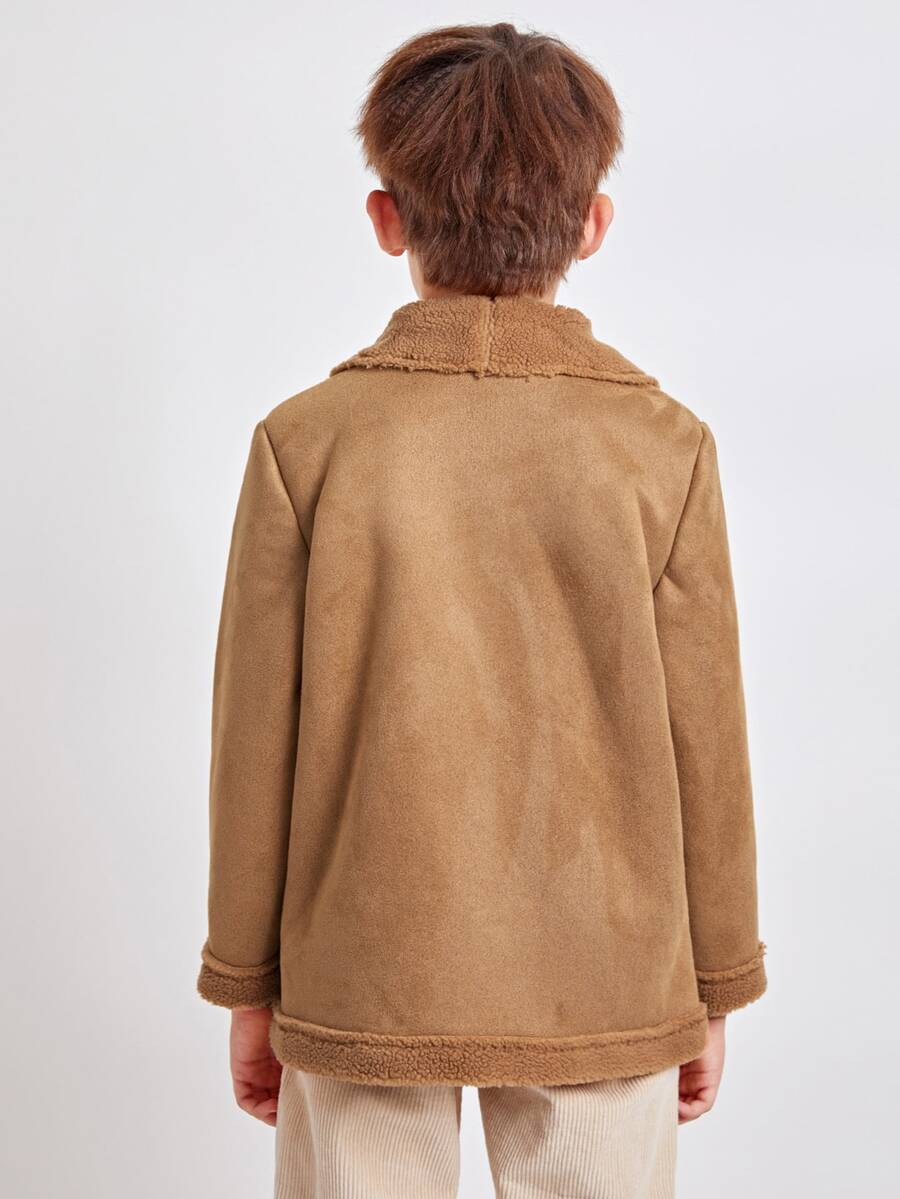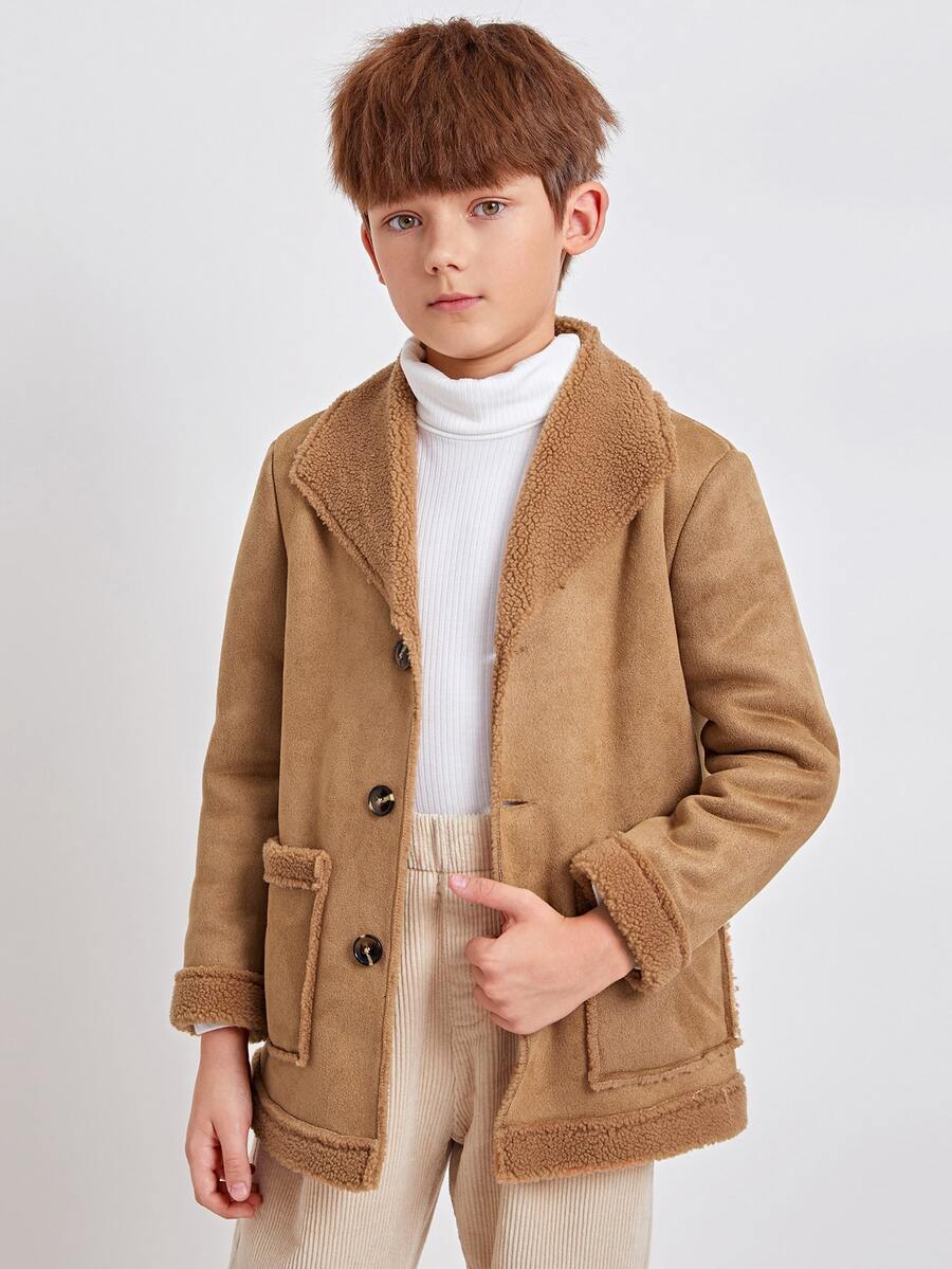 Boys Waterfall Collar Pocket Front Teddy Lined Coat