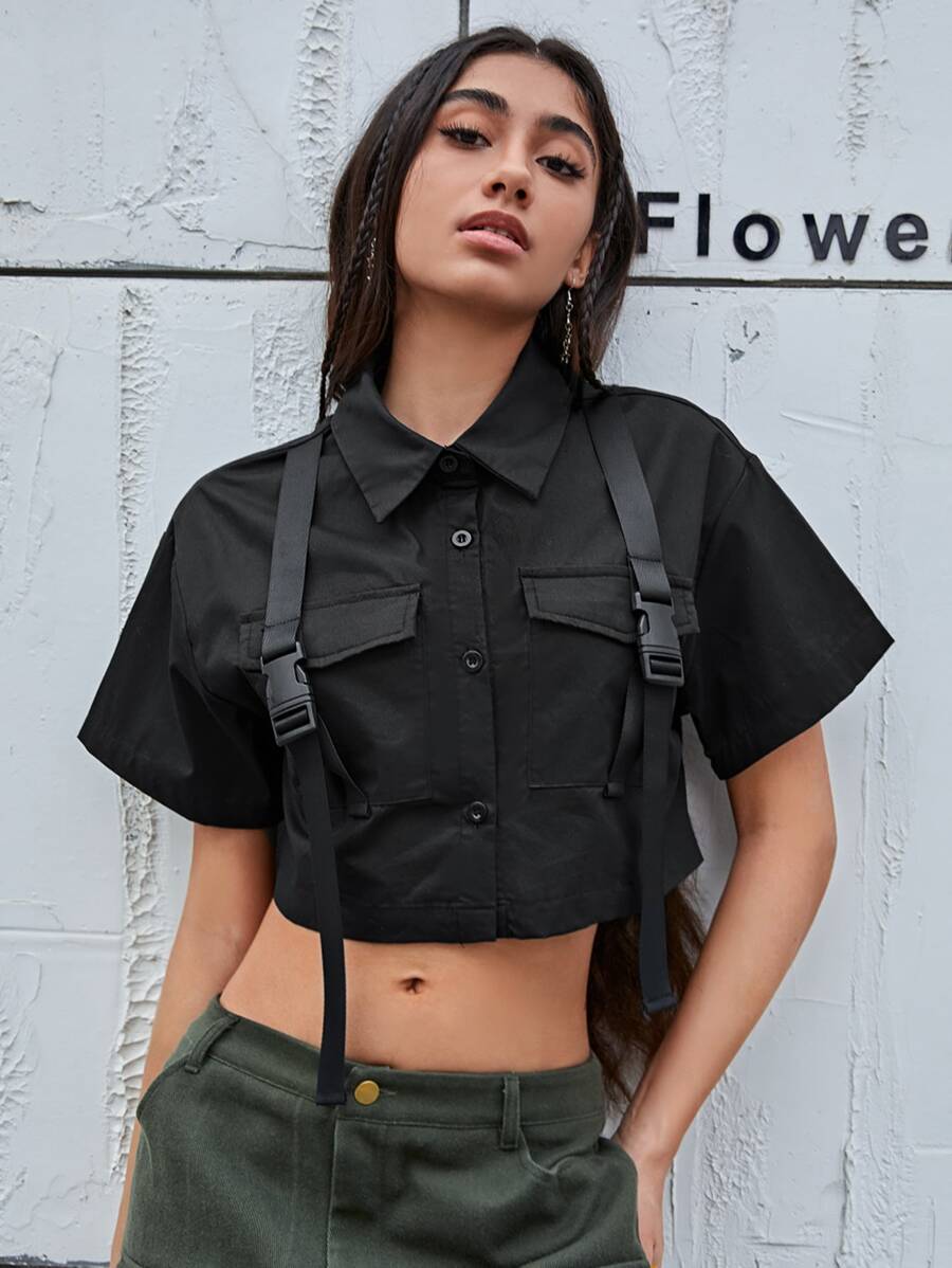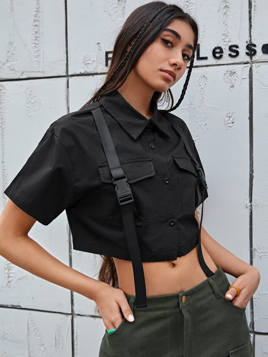 Buckled Front Crop Shirt