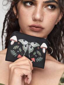 Fairycore Butterfly & Mushroom Print Coin Purse