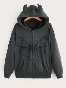 Butterfly Graphic Zip Up Pocket Hoodie