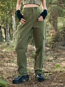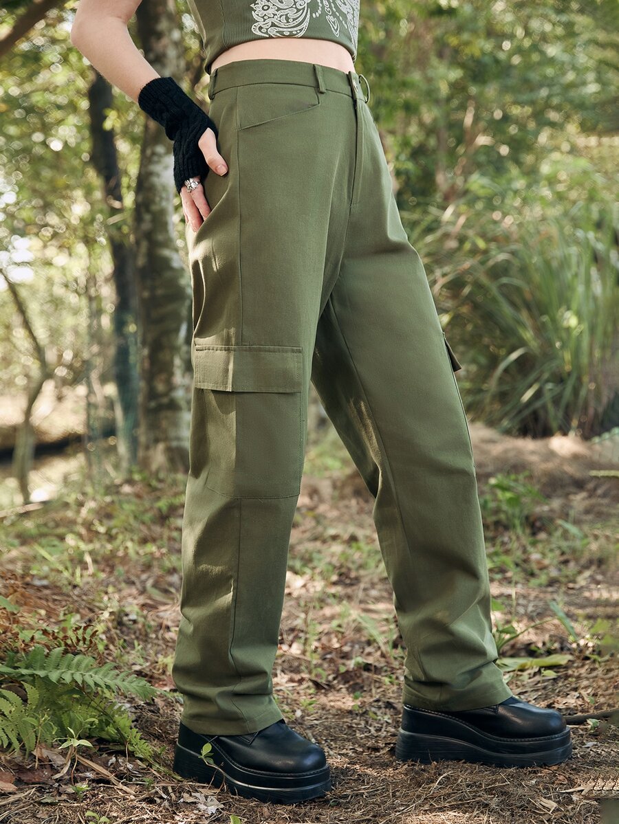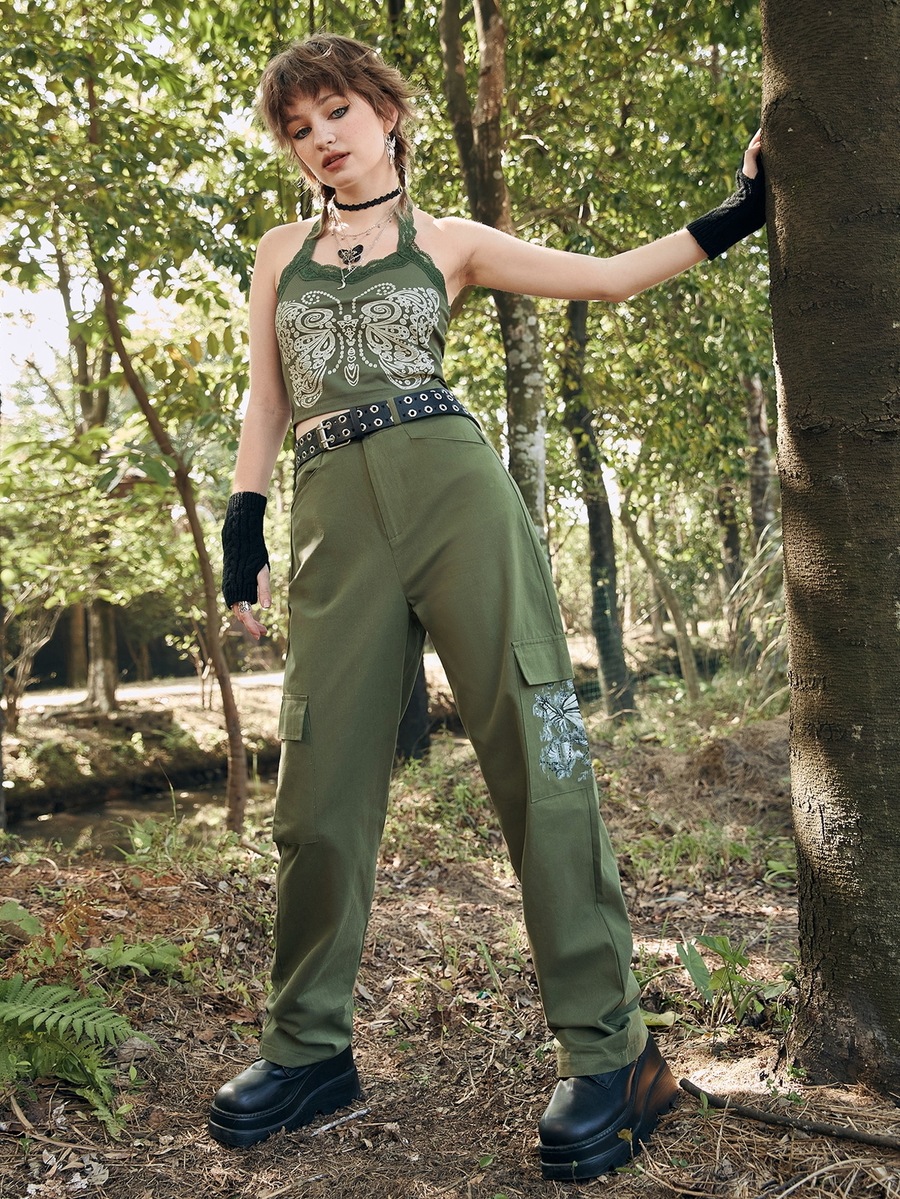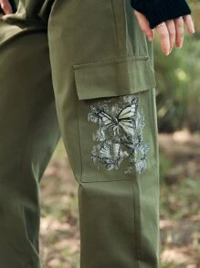 Butterfly Print Flap Pocket Cargo Pants