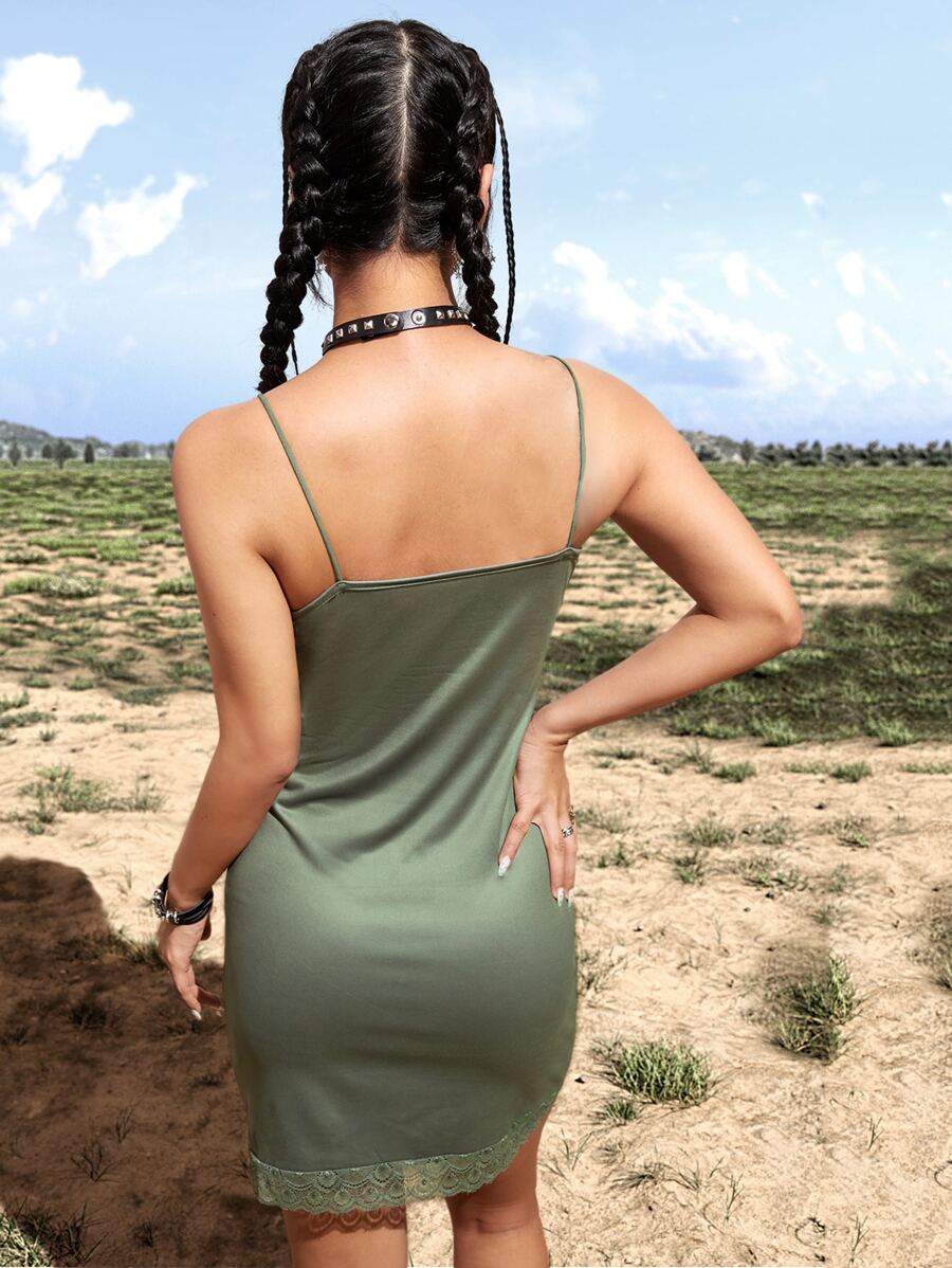 Butterfly Print Lace Trim Cami Dress