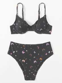 Butterfly Print Underwire Bikini Set Summer Beach