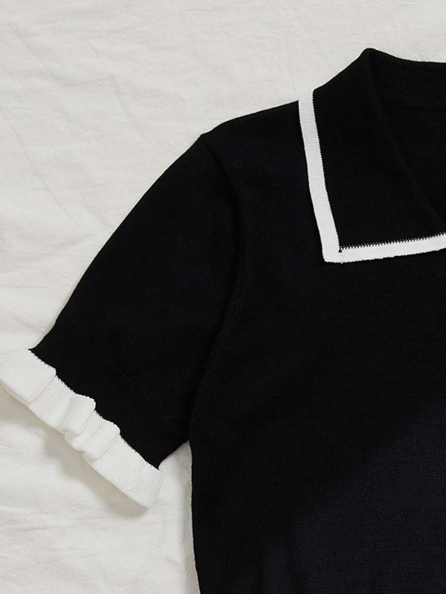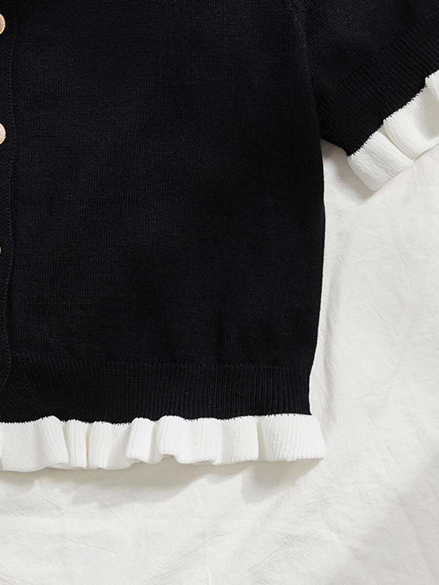 Button Front Contrast Binding Frill Trim Cardigan,Short Sleeve Tops