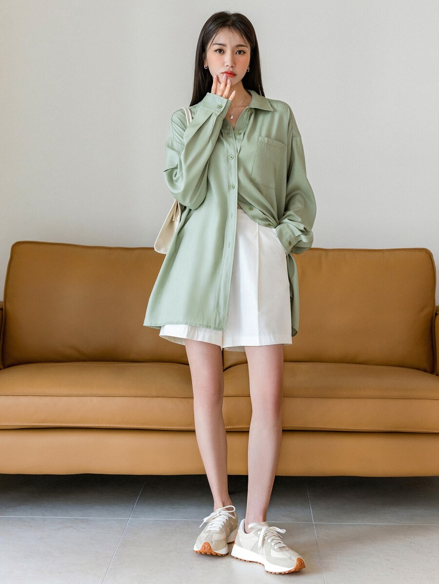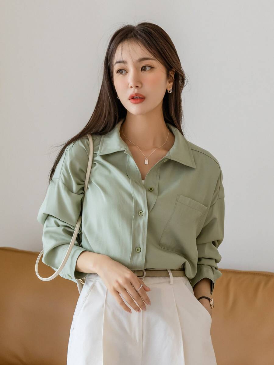 Button Front Drop Shoulder Blouse,Fall Women Clothes Long Sleeve Top